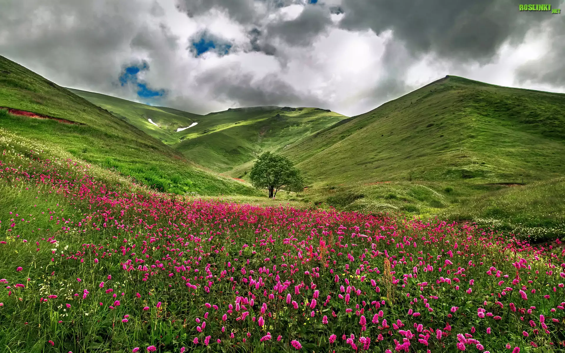 Rośliny: Francja, Sabaudia, Kwiaty, Wzgórza, Drzewo, Łąka