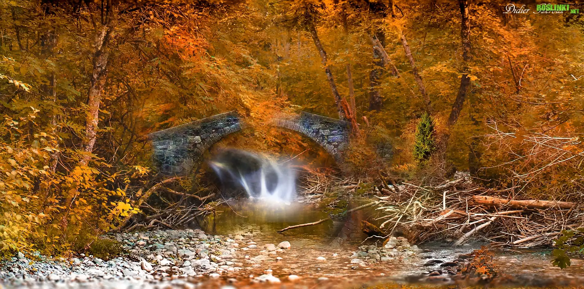Rośliny: Francja, Mostek, Wodospad, Las, Jesień, Drzewa