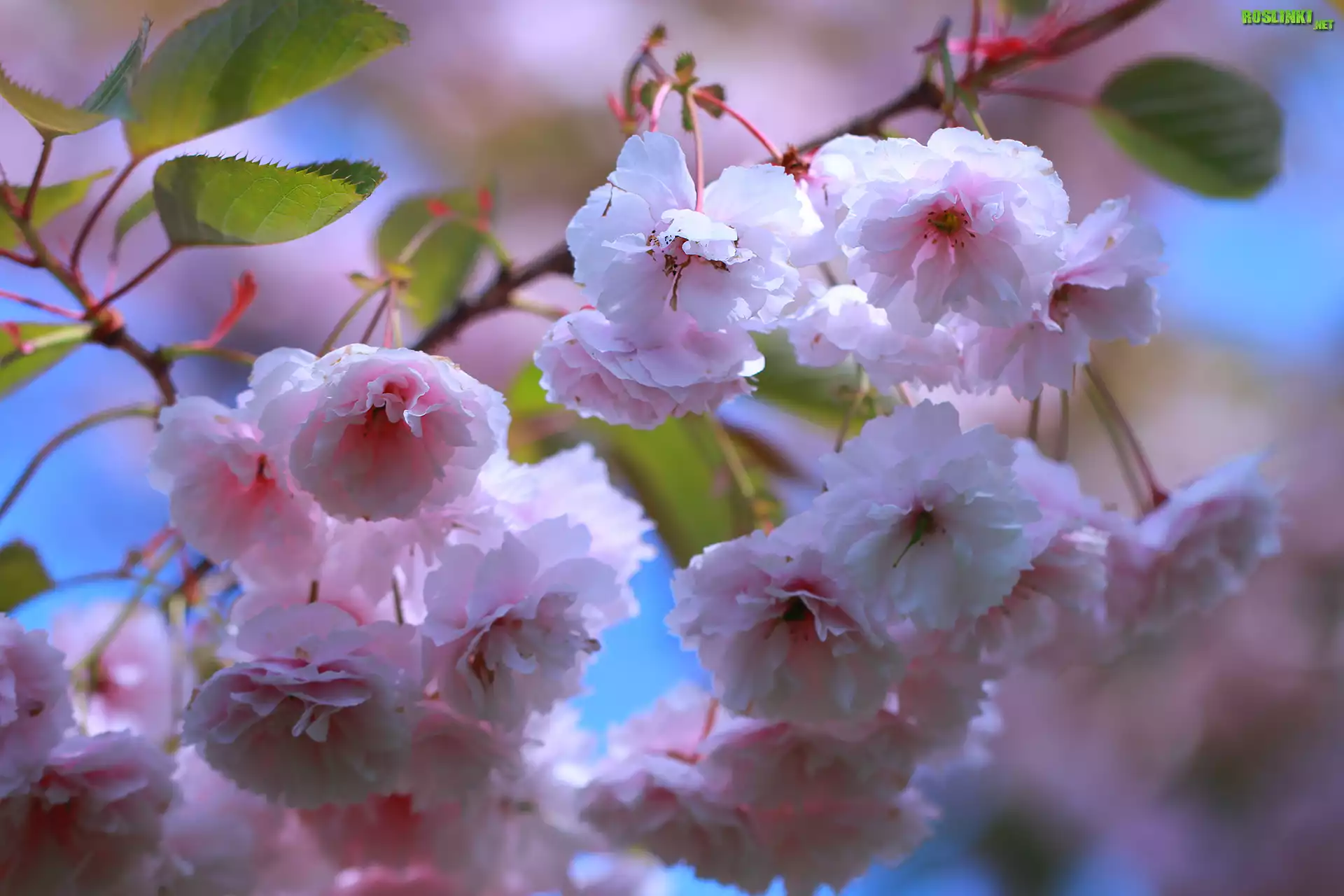 Gałąź, Różowa, Wiśnia ozdobna, Kwiaty