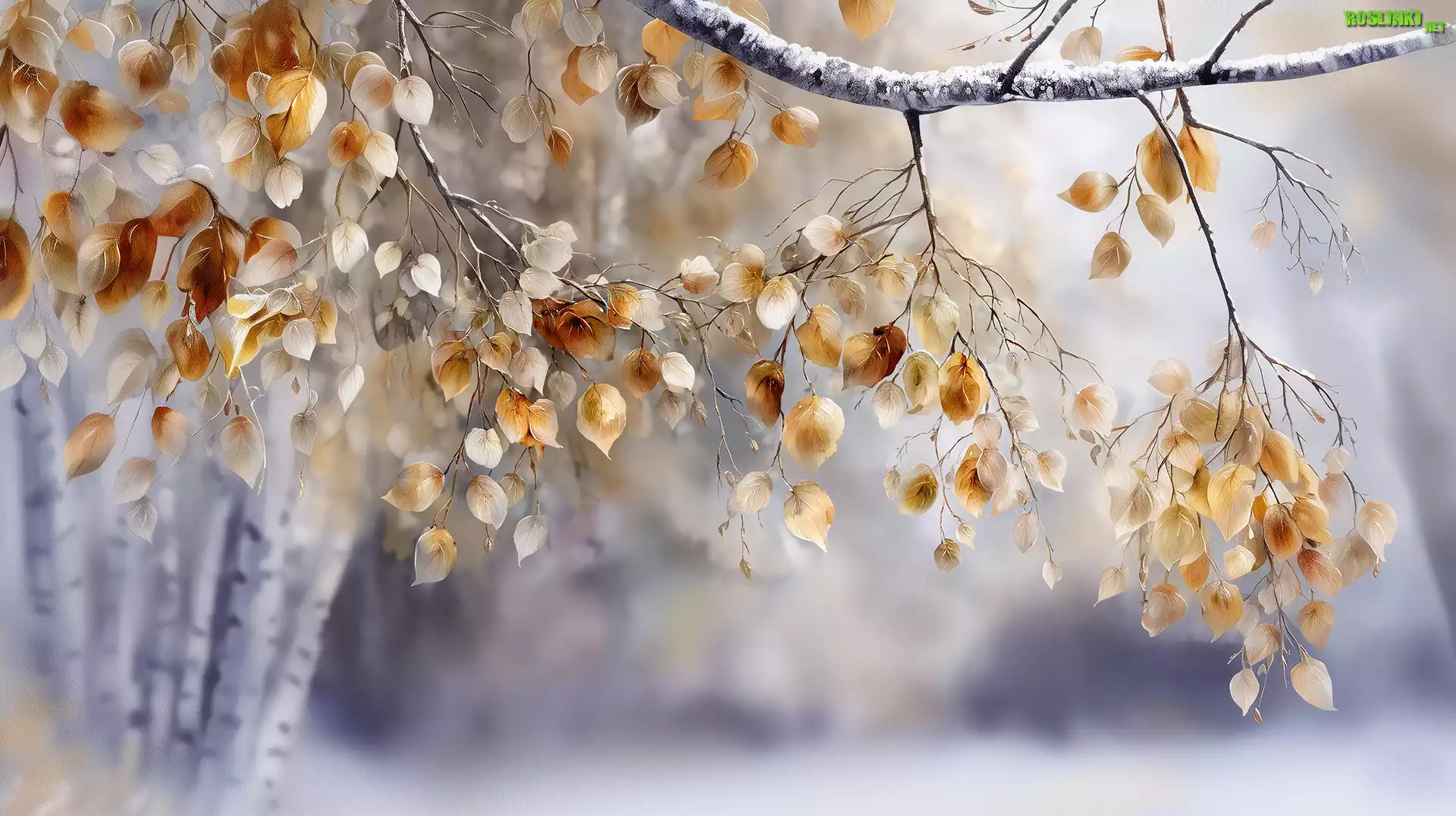 Rośliny: Jesienne, Liście, Brzoza, Gałązka, Grafika AI