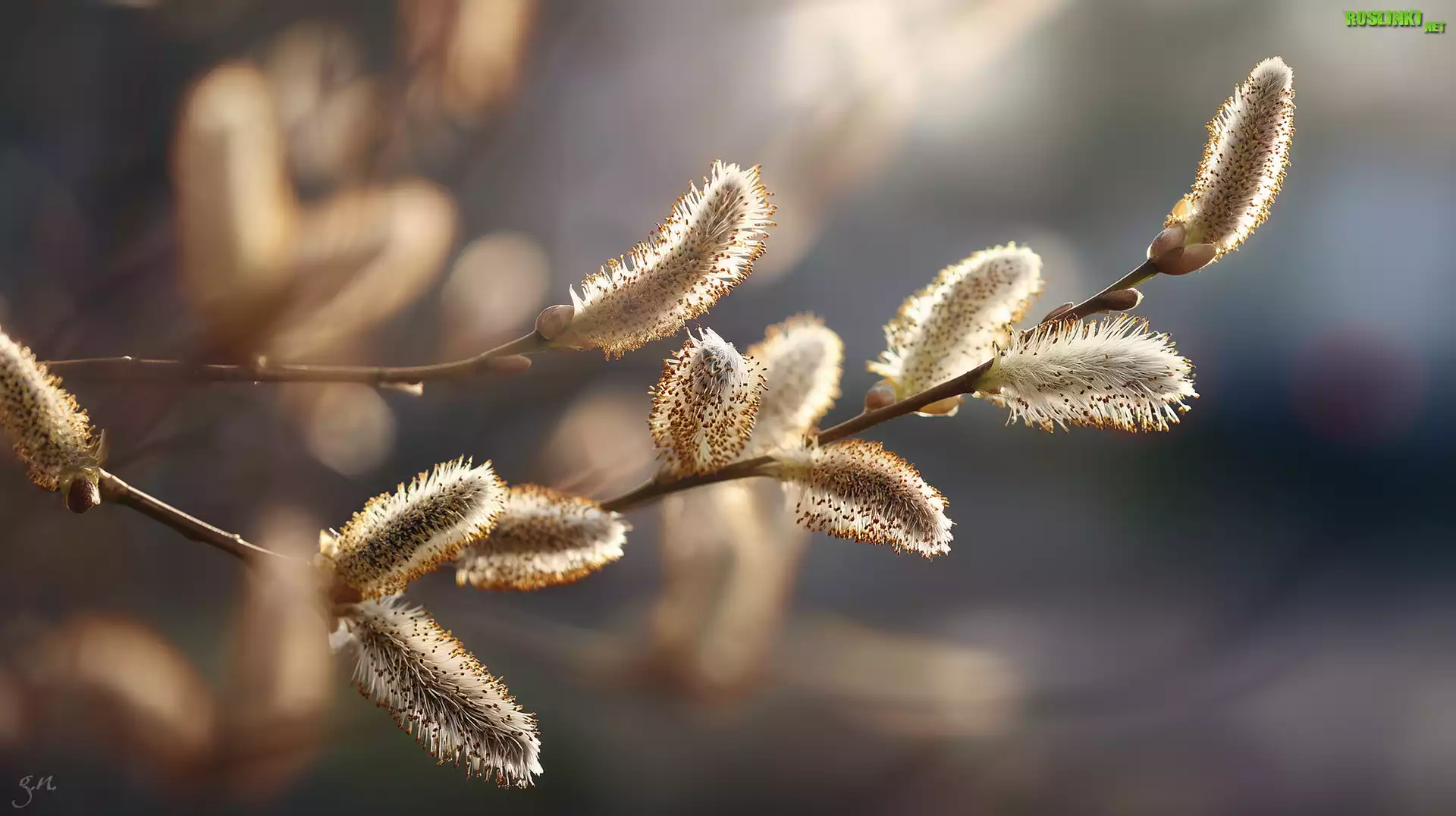 Rośliny: Wierzba, Bazie, Kwitnące, Gałązka, Grafika AI