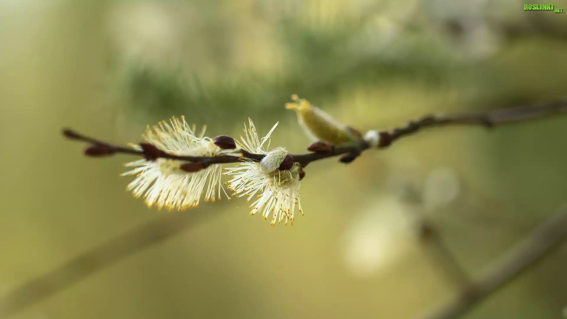 Rośliny: Gałązka, Wierzba, Kotki, Bazie, Makro