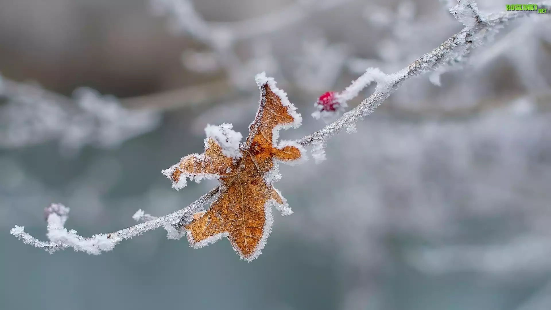 Rośliny: Gałązka, Liść, Jagoda, Szron
