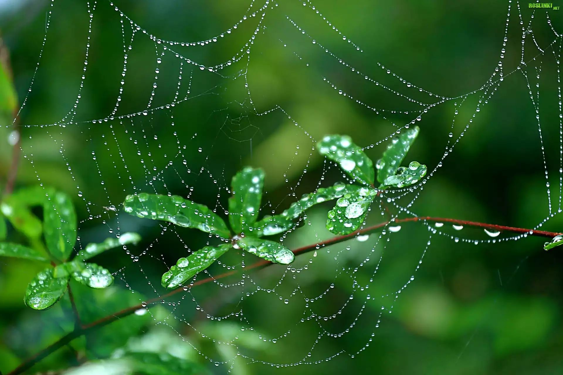 Rośliny: Gałązka, Listki, Pajęczyna, Krople, Deszczu