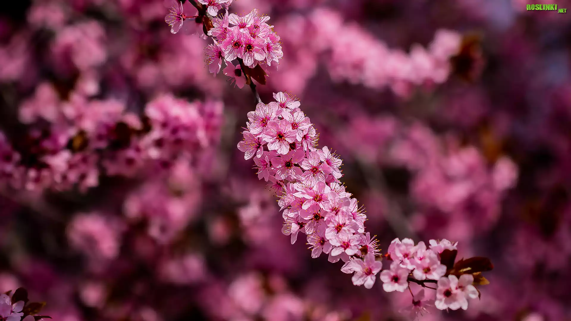 Rośliny: Drzewo owocowe, Okwiecona, Gałązka, Ciemnoróżowe, Kwiaty