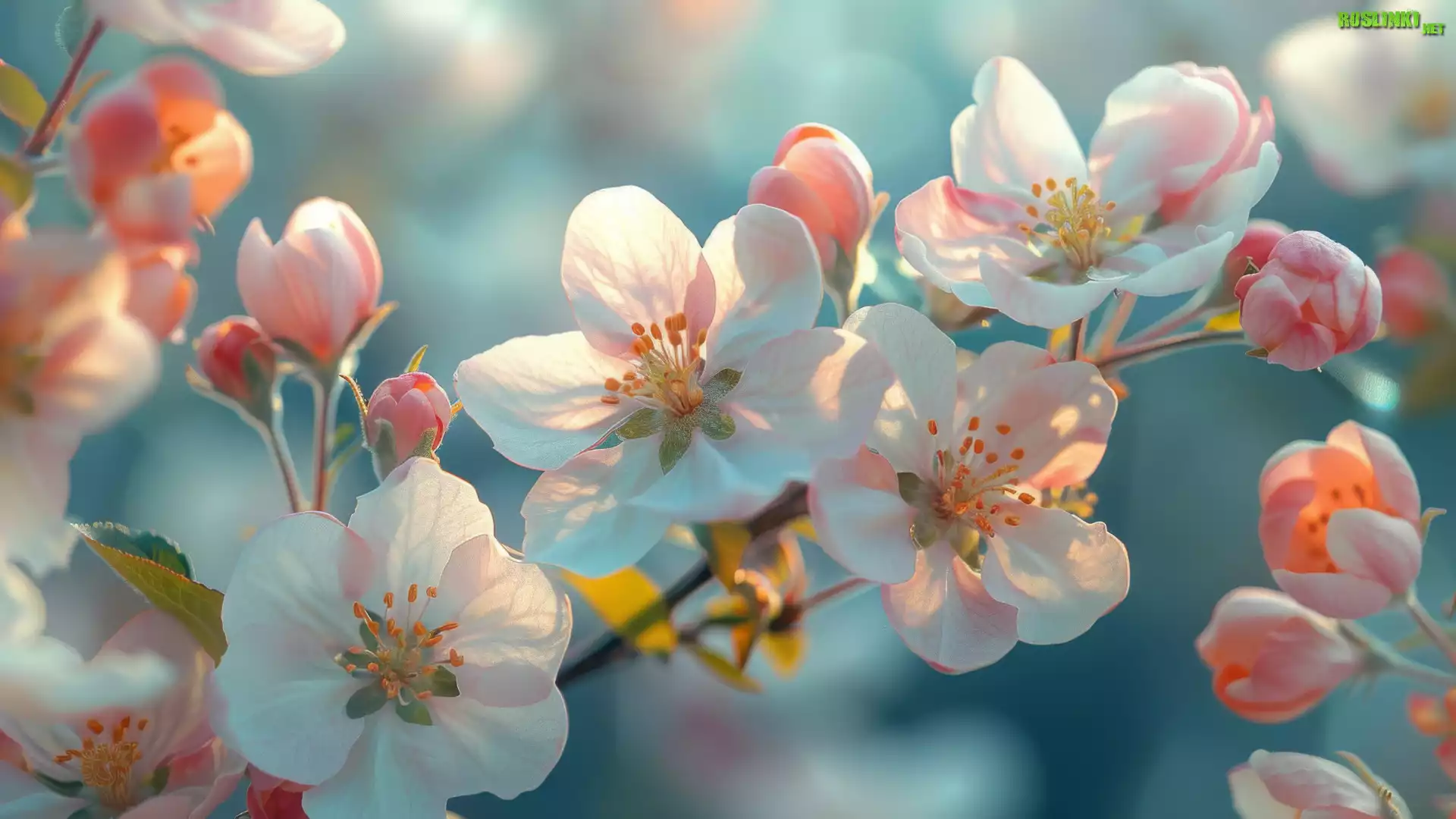 Rośliny: Drzewo owocowe, Kwiaty, Biało-różowe, Pąki, Jabłoń, Gałązka