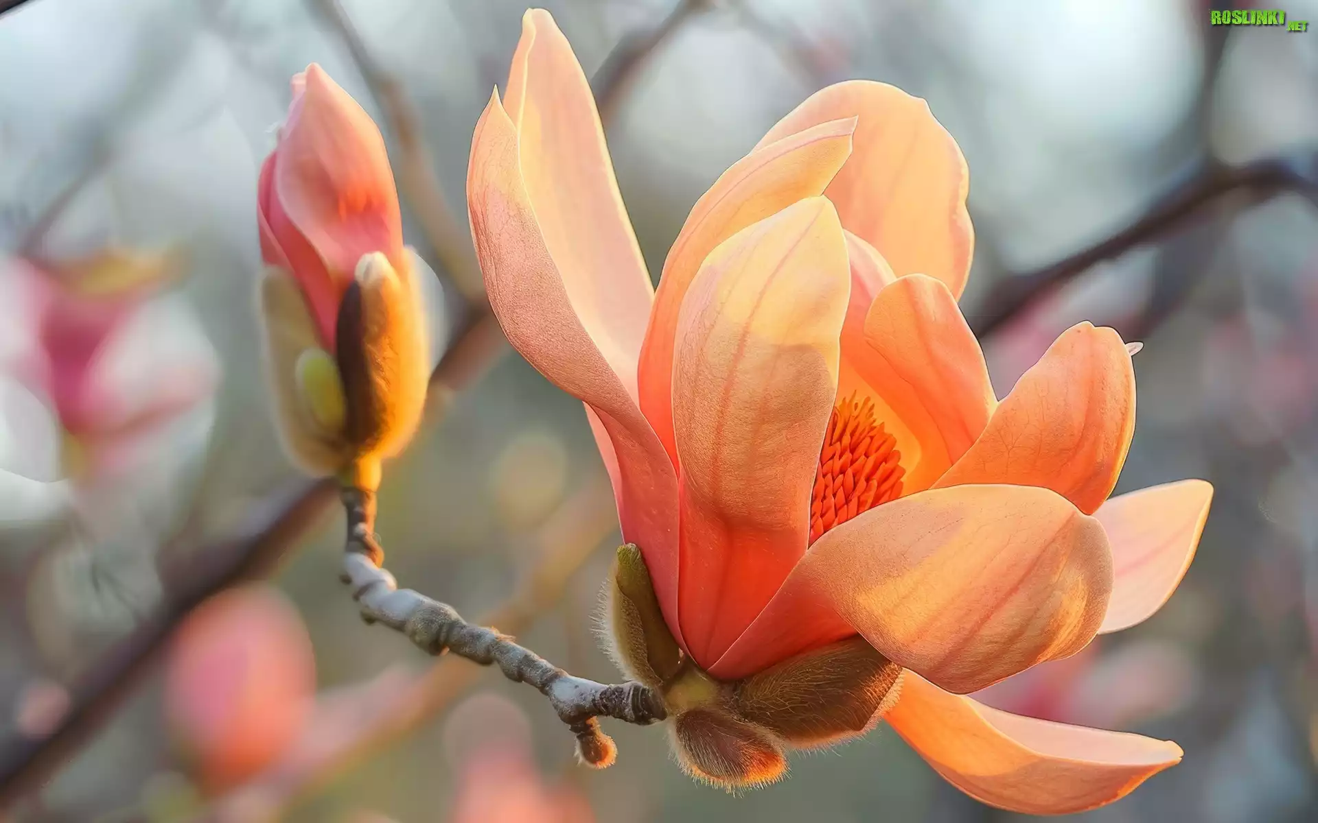 Rośliny: Magnolia, Kwiat, Pąk, Gałązka