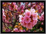Różowe, Kwiaty, Listki, Gałązka, Drzewo owocowe