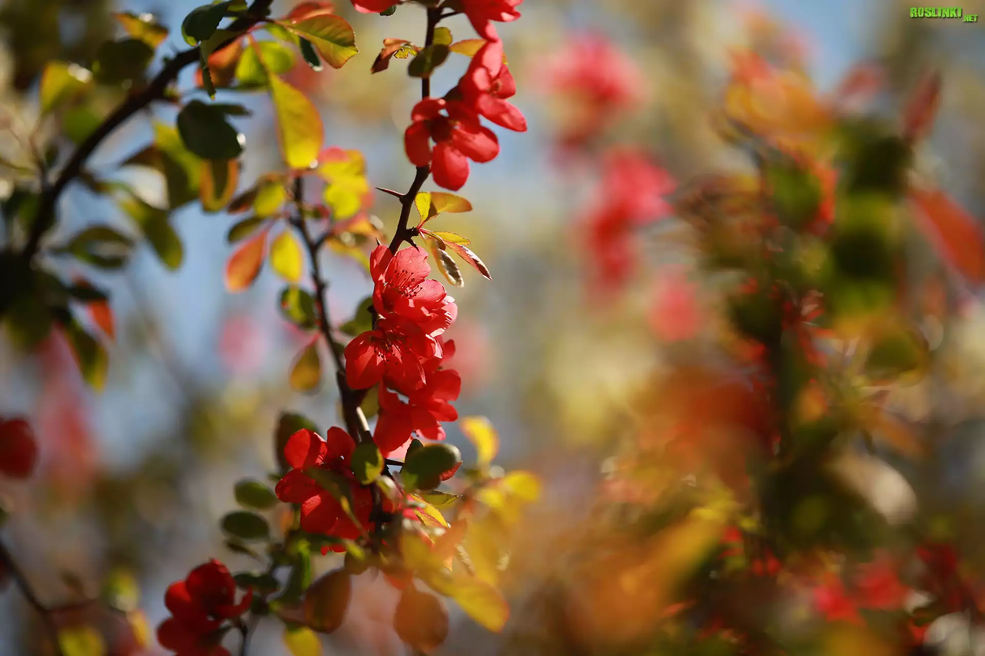 Rośliny: Pigwowiec, Gałązka, Kwiaty