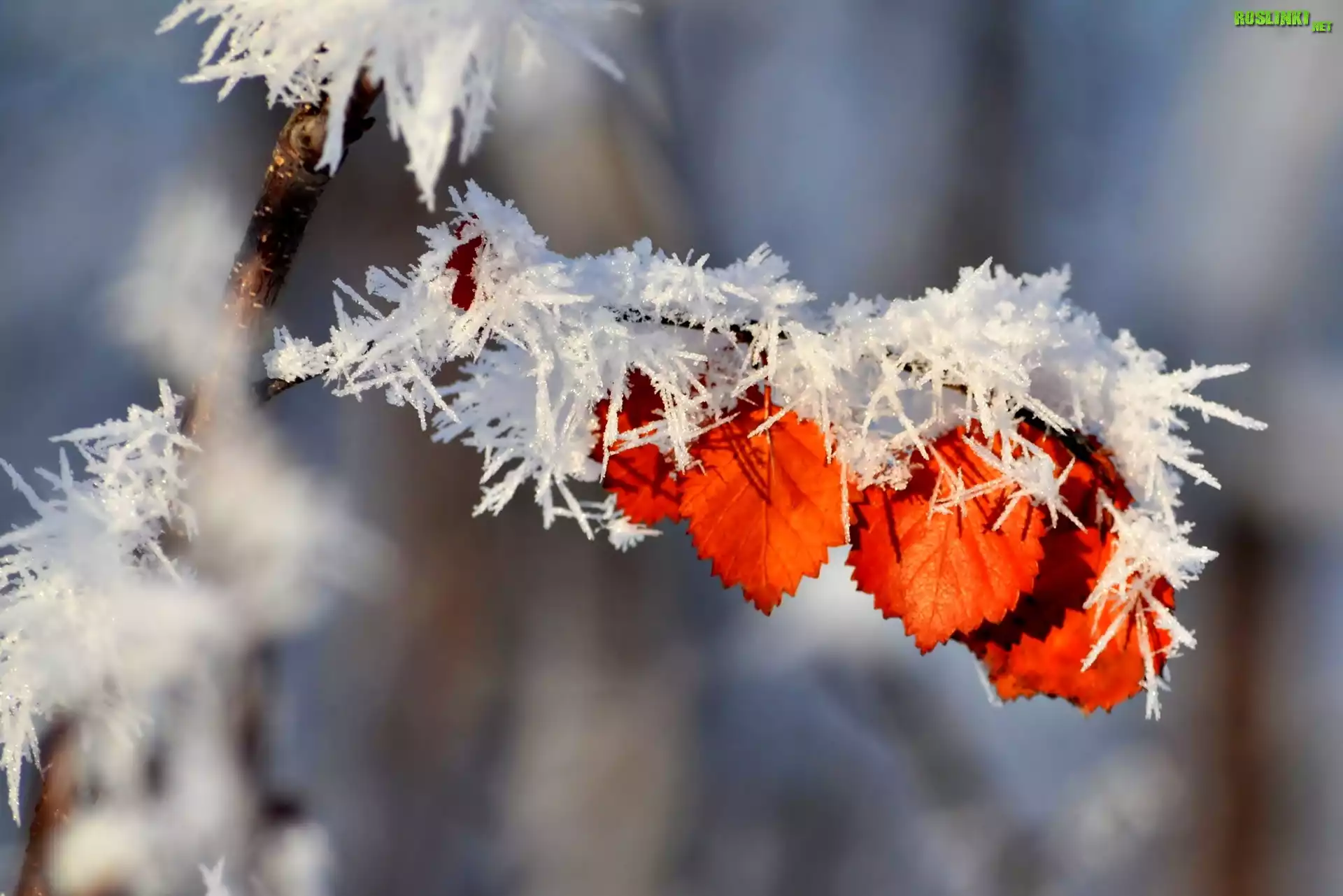 Rośliny: Gałązka, Jesienne, Liście, Szron, Mróz