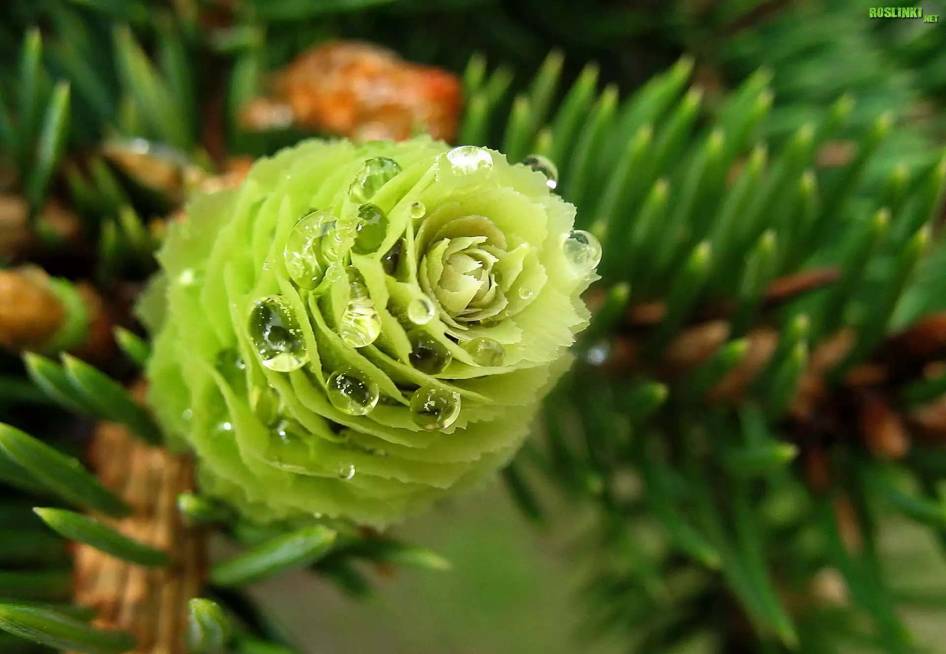 Rośliny: Gałązka, Iglaka, Zielona, Szyszka, Rosa
