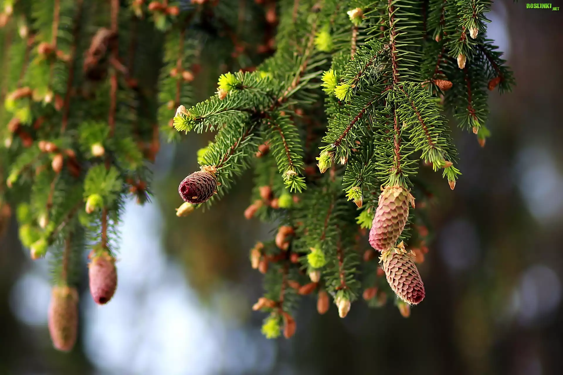 Rośliny: Świerk Engelmanna, Gałązki, Szyszki