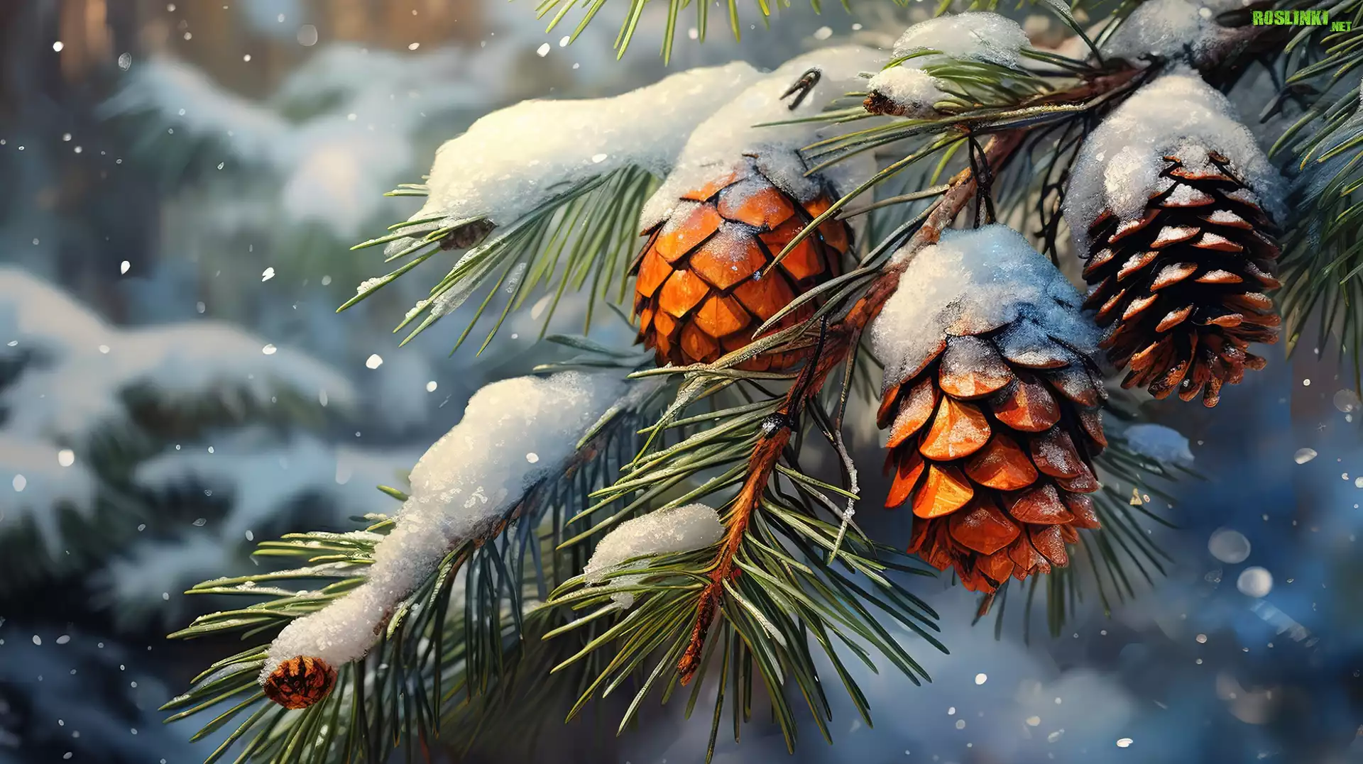 Rośliny: Zima, Szyszki, Śnieg, Gałązki, Sosny, Grafika
