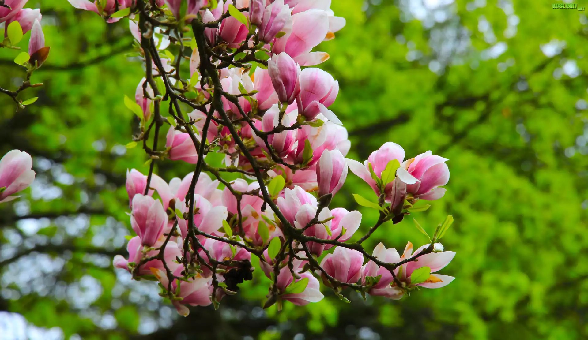 Magnolia, Rozkwitające, Kwiaty, Gałązki