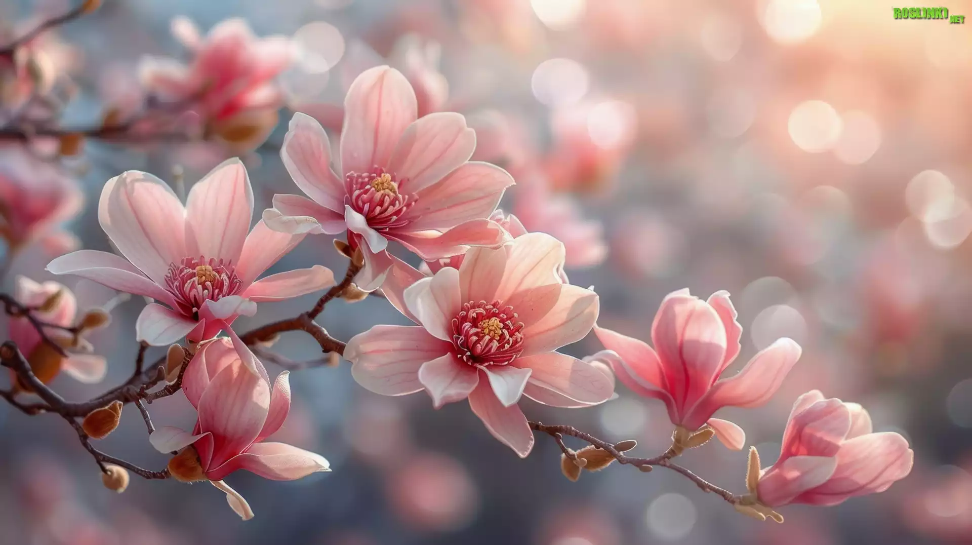 Rośliny: Kwitnące, Gałązki, Magnolia, Różowe, Kwiaty