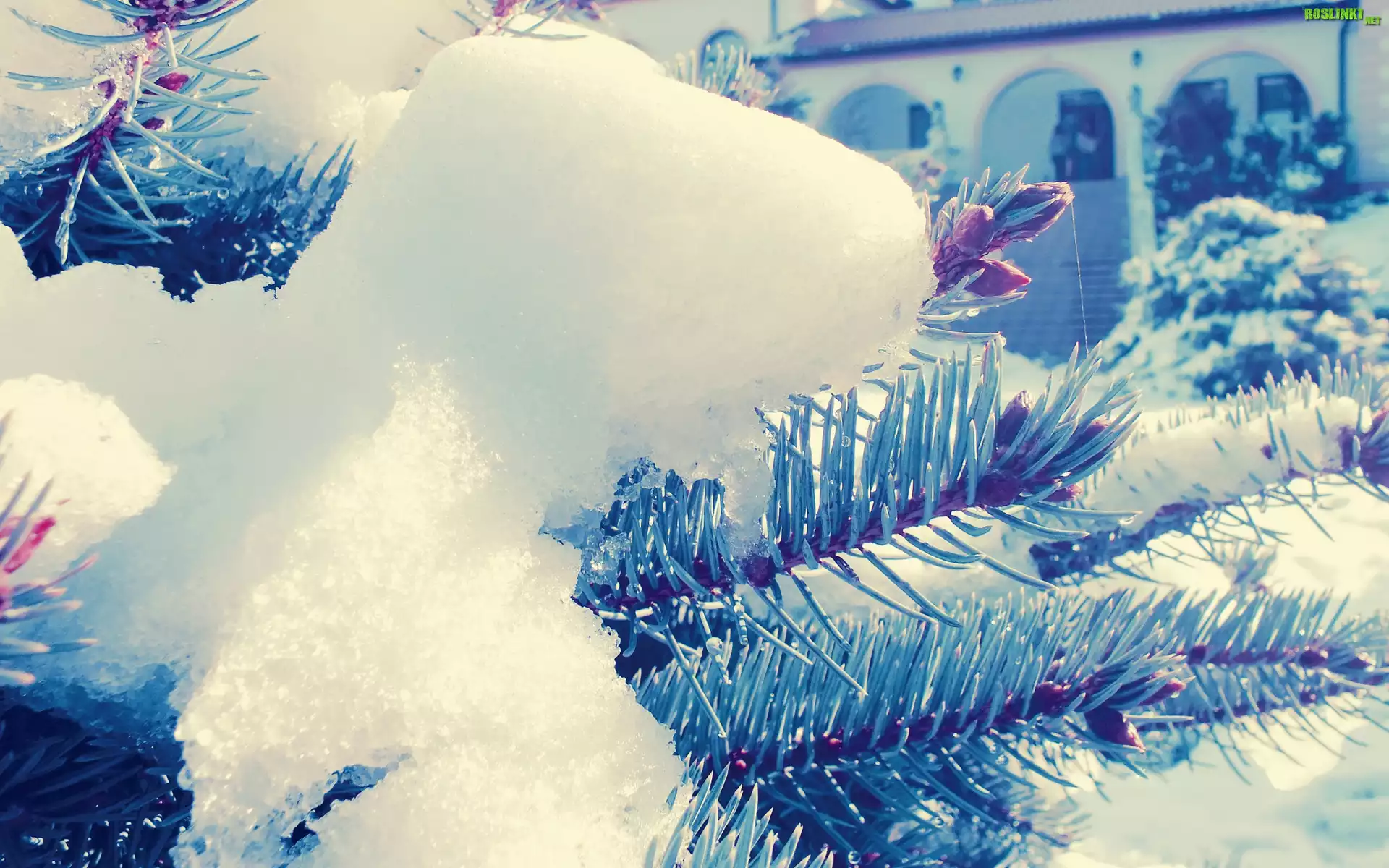 Gałązki, Świerkowe, Śnieg, Zima