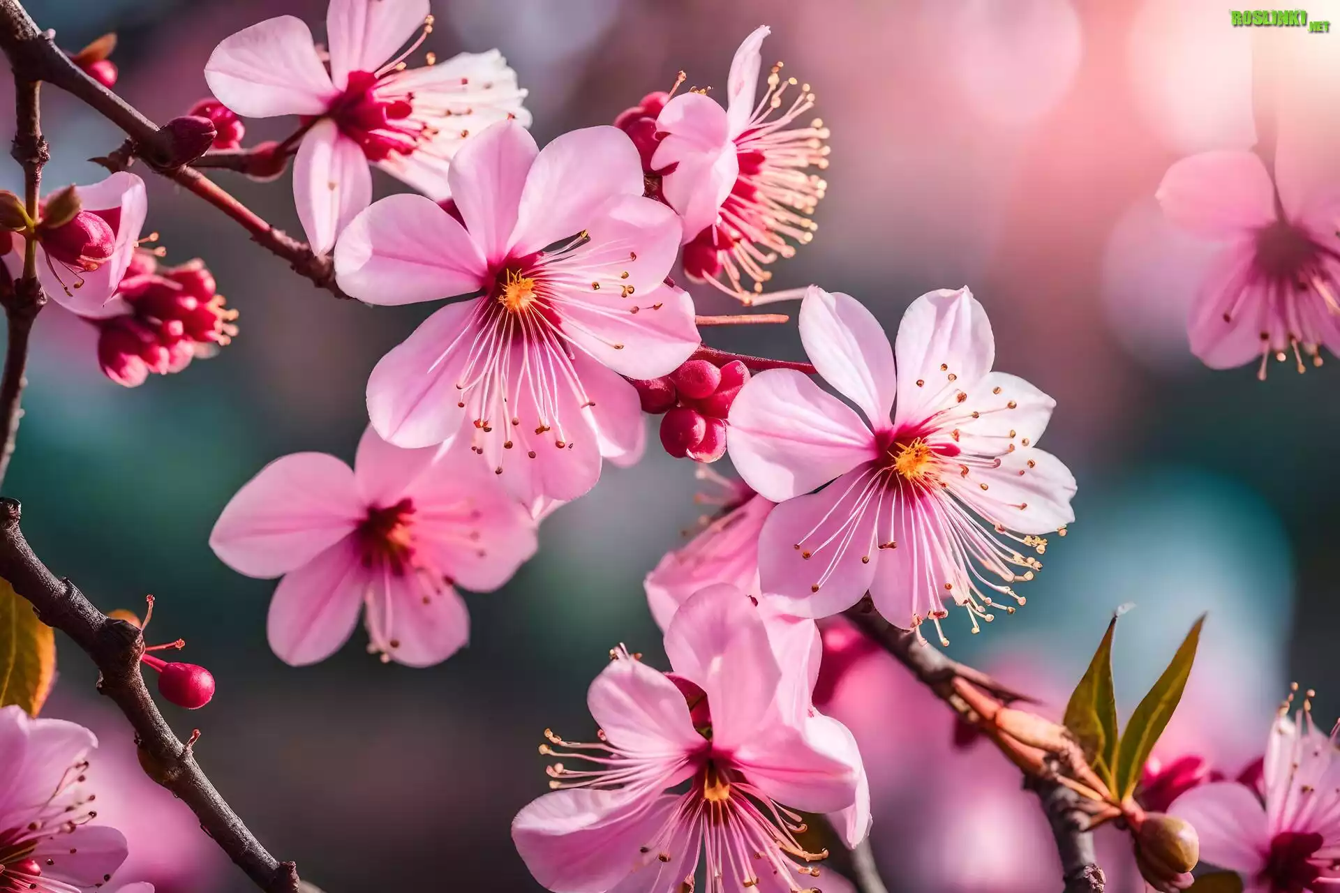 Rośliny: Rozkwitnięte, Różowe, Kwiaty, Gałązki, Drzewo owocowe