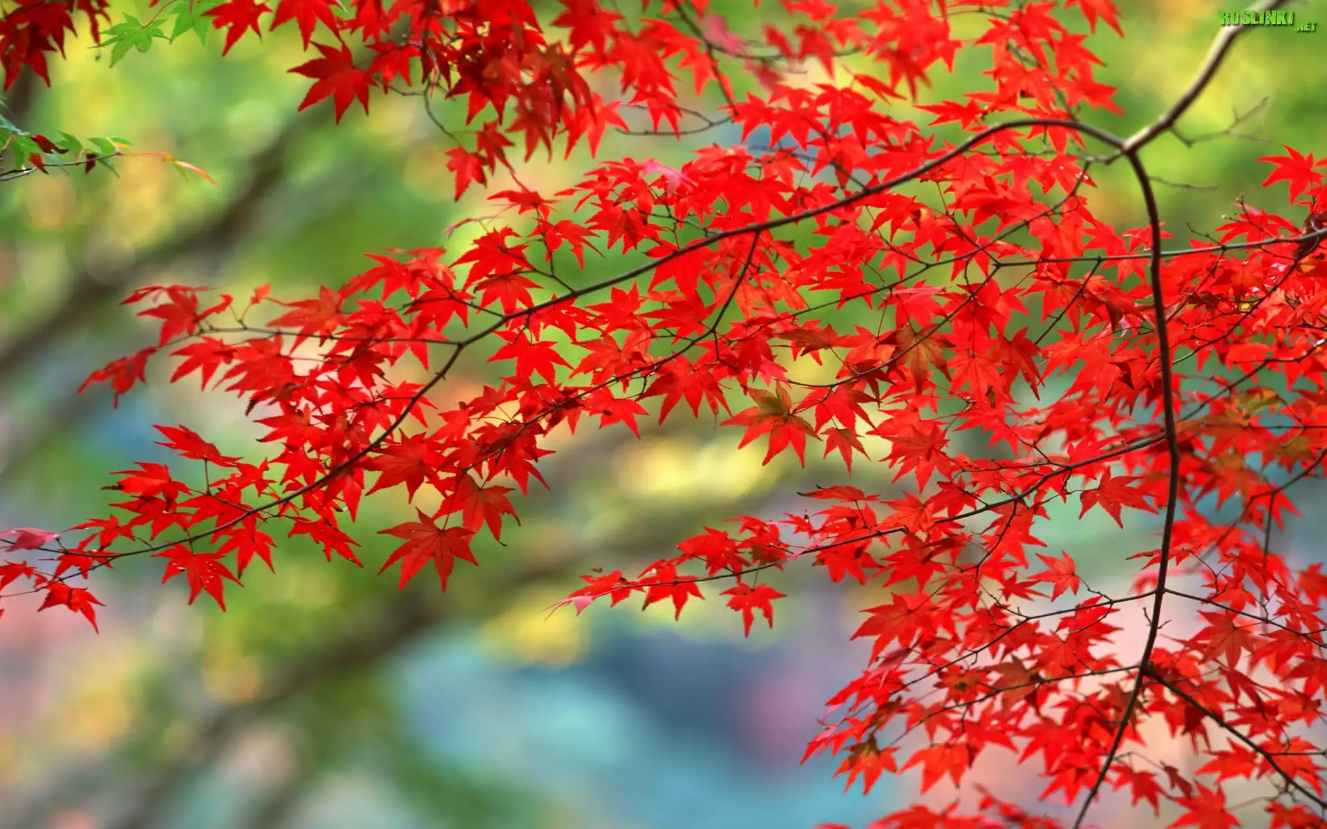 Gałęzie, Liście, Czerwony, Klon