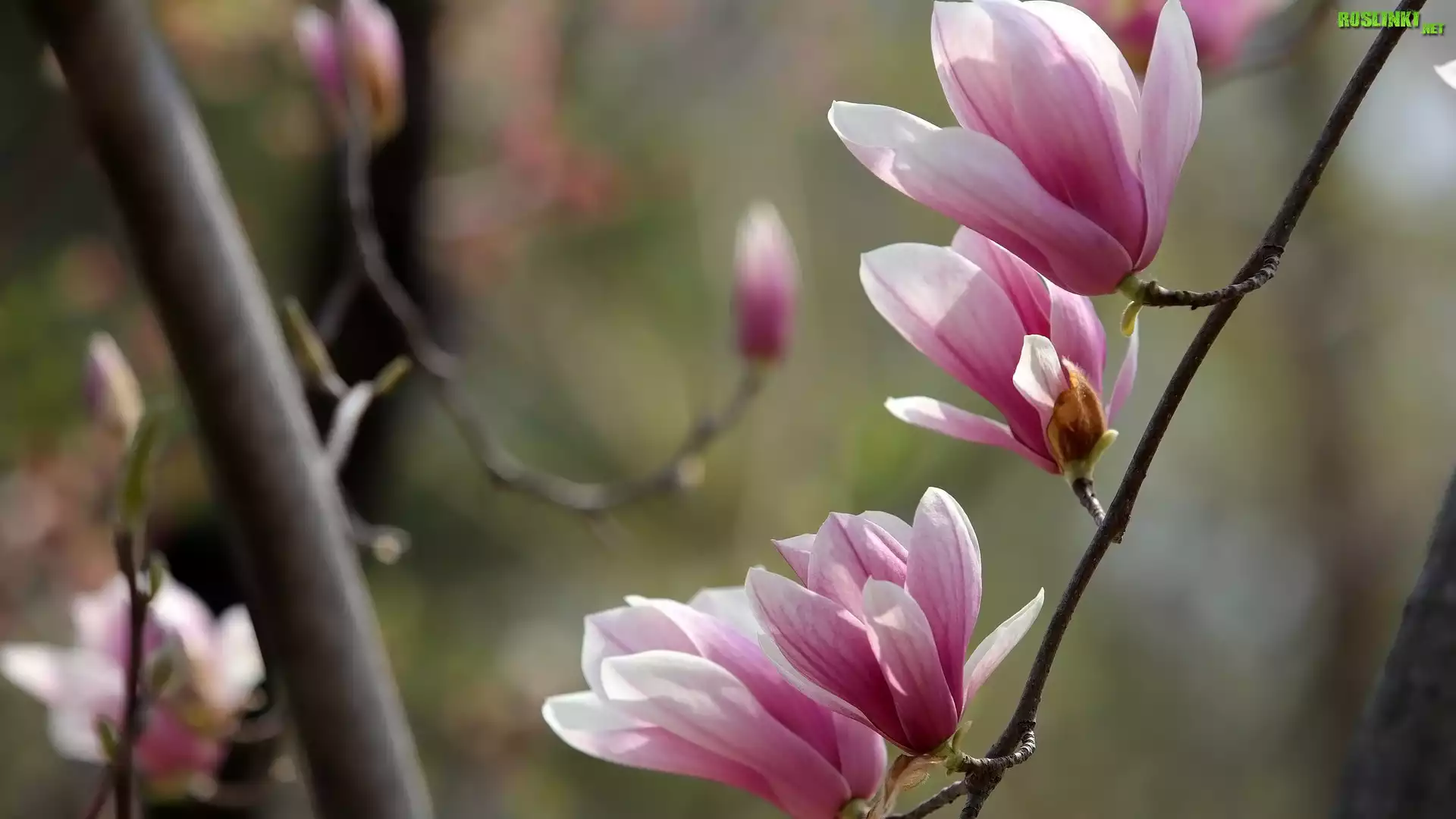 Rośliny: Różowe, Kwiaty, Magnolie, Gałęzie
