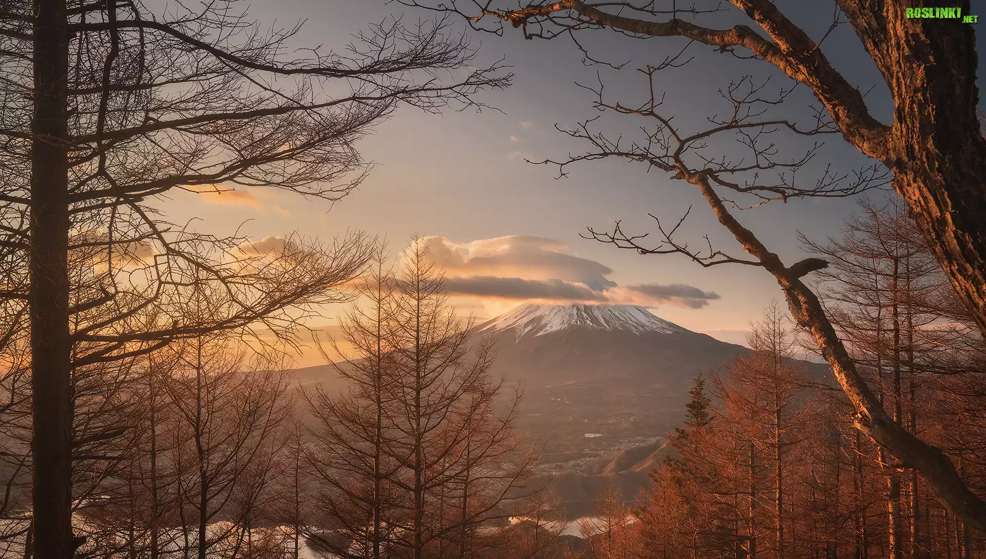 Rośliny: Drzewa, Góra, Stratowulkan, Fudżi, Chmury, Wyspa Honsiu, Japonia
