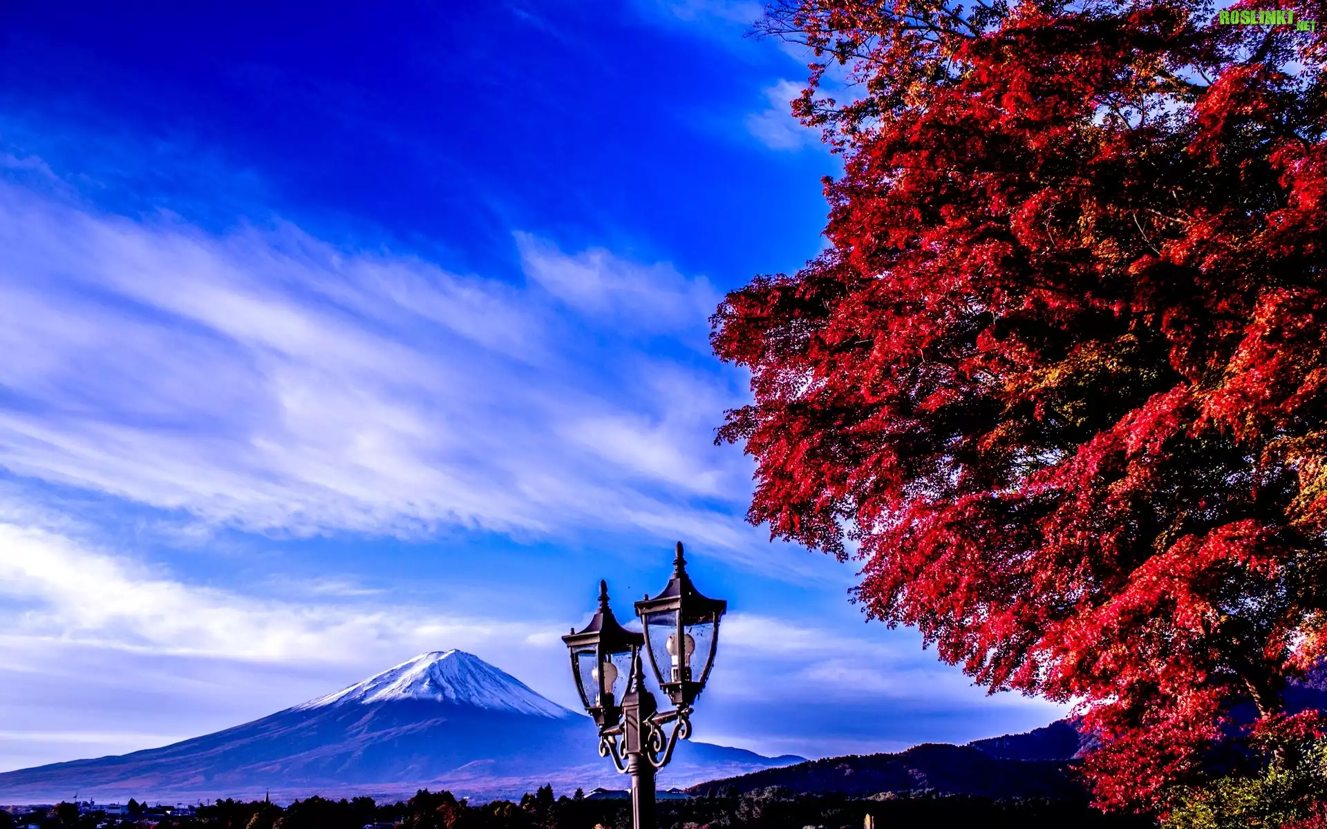 Rośliny: Góra, Fuji, Drzewo, Lampa, Japonia