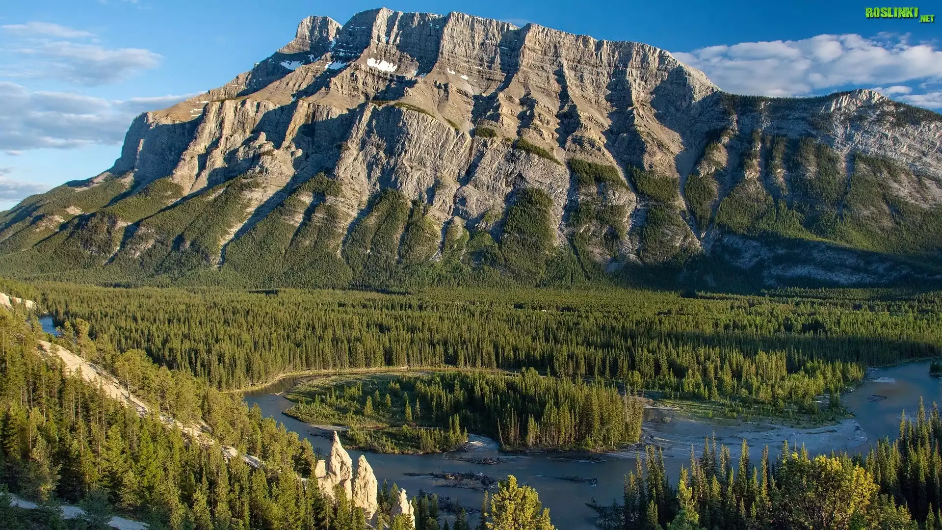 Rośliny: Góra, Mount Rundle, Drzewa, Jezioro, Park Narodowy Banff, Kanada