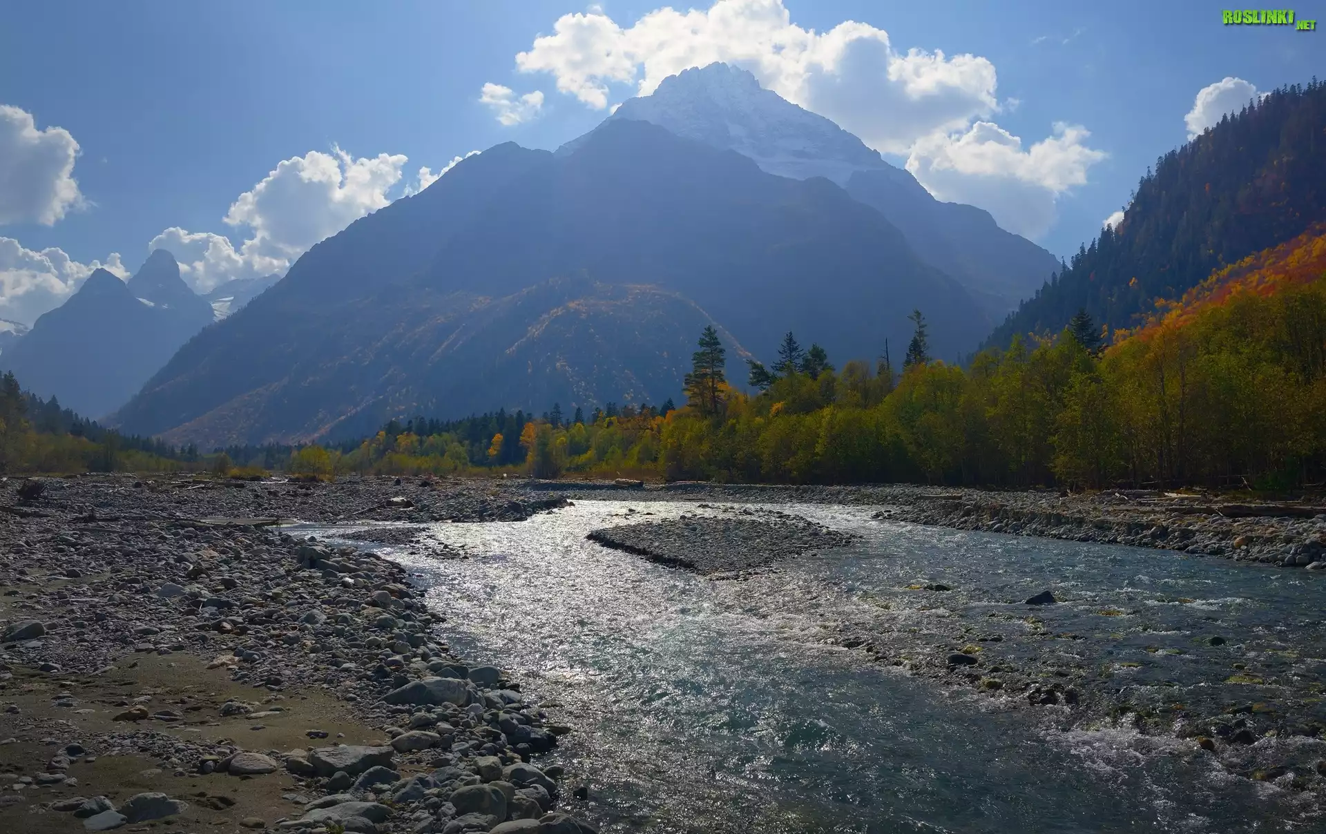 Rośliny: Góry, Góra Pshish, Rzeka, Kamienie, Drzewa, Arkhyz, Rosja