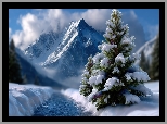 Zima, Rzeka, Drzewa, Góry, Grafika AI