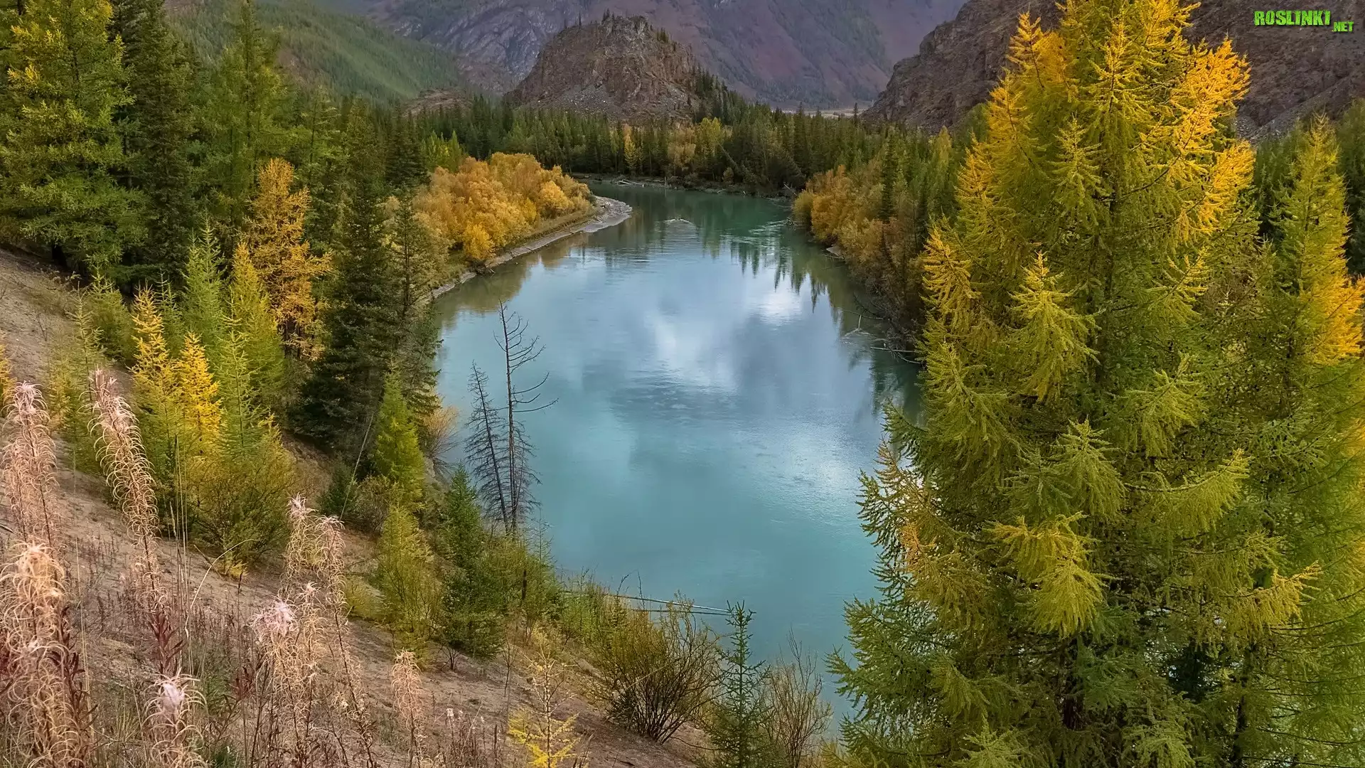 Rośliny: Góry, Ałtaj, Rzeka, Czuja, Drzewa, Jesień, Chmury, Republika Ałtaju, Rosja