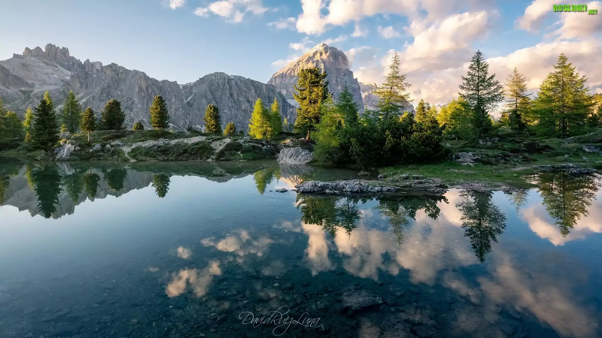 Rośliny: Góry, Dolomity, Jezioro, Lago Limides, Drzewa, Odbicie, Prowincja Belluno, Włochy