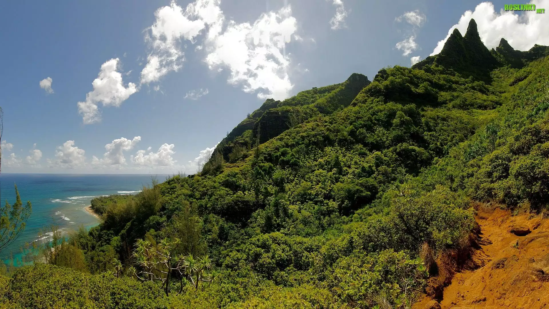 Rośliny: Góry, Drzewa, Chmury, Morze
