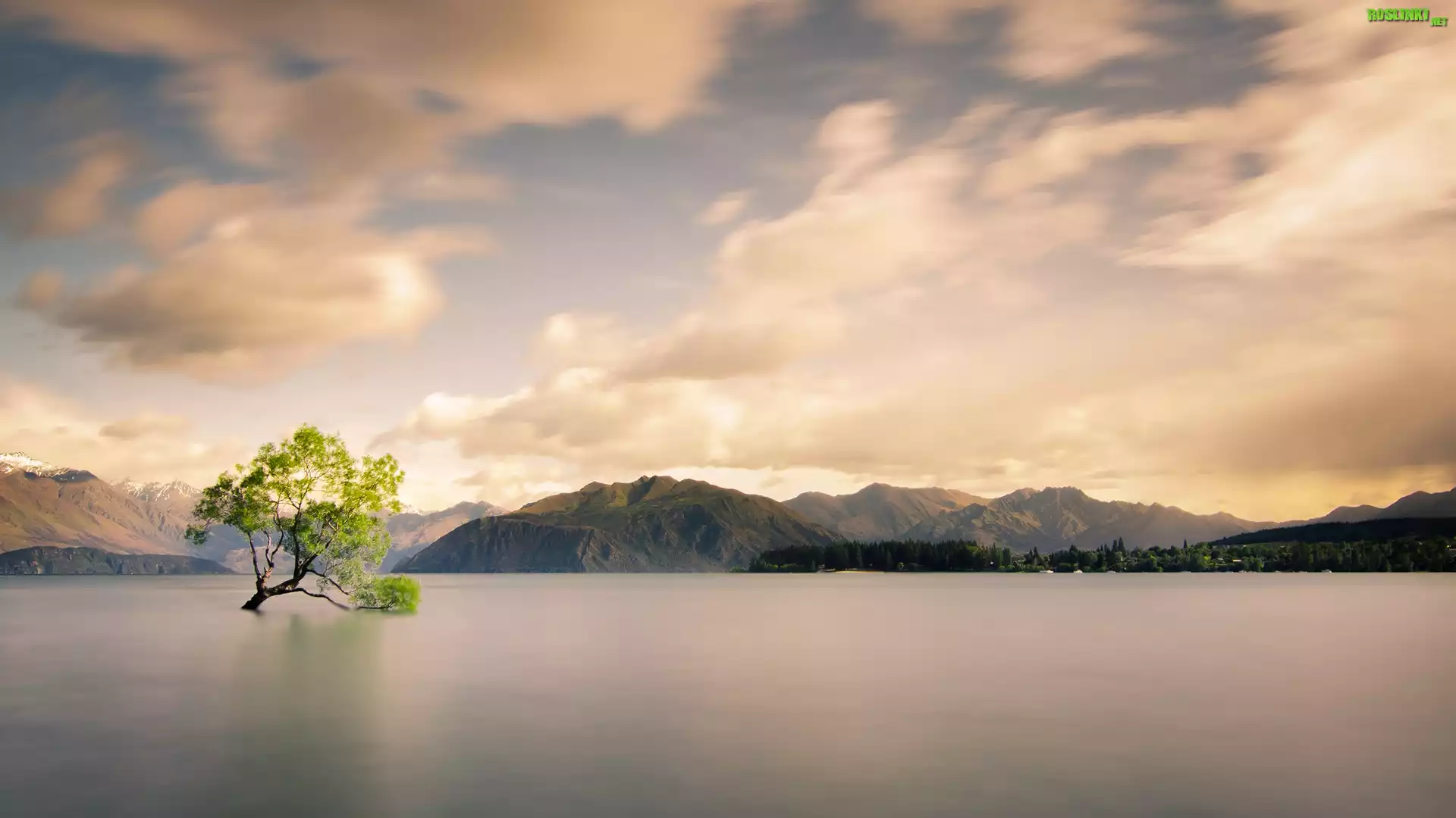 Rośliny: Góry, Jezioro, Drzewo, Chmury, Niebo