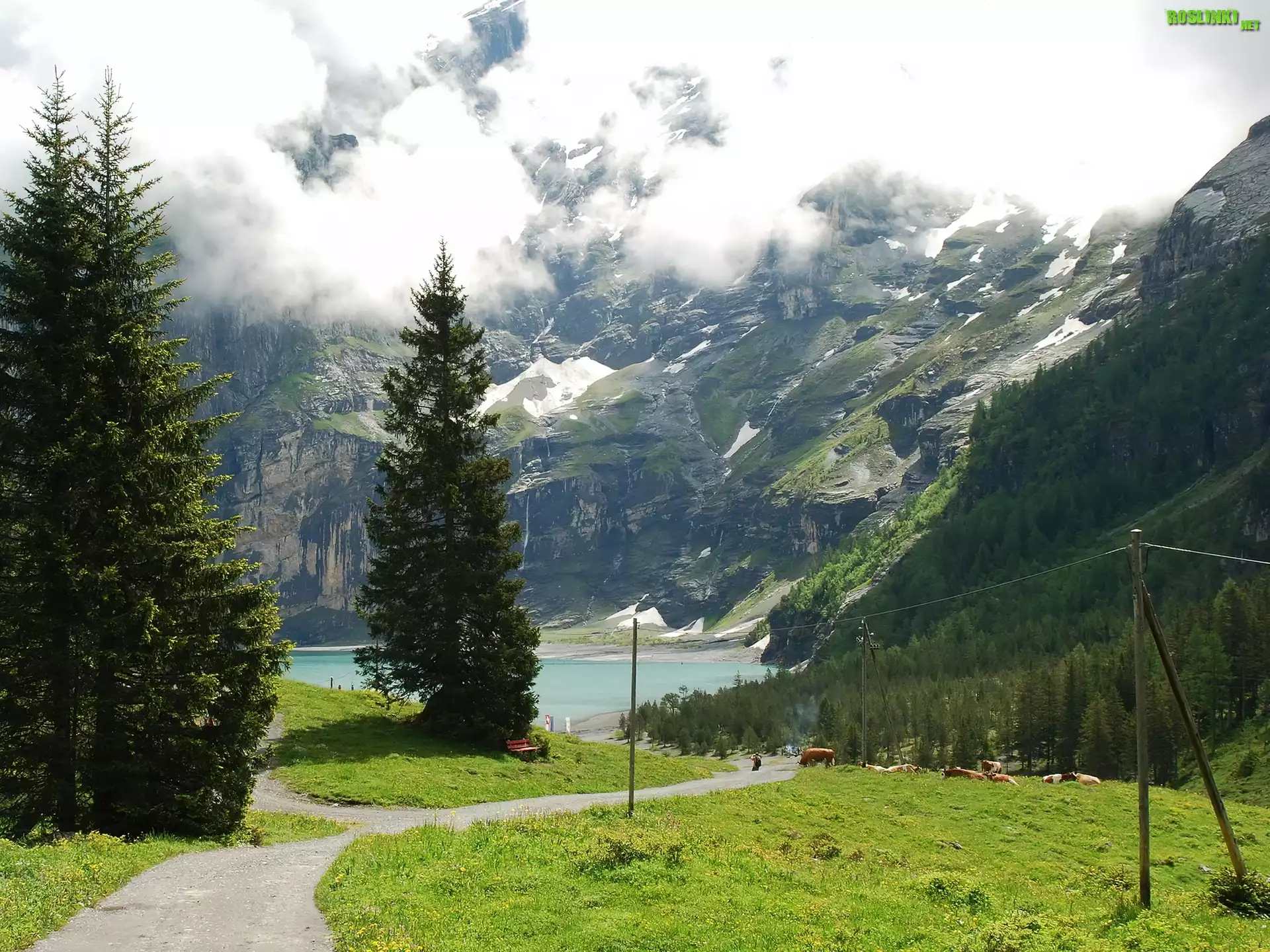 Rośliny: Góry, Jezioro, Chmury, Świerki