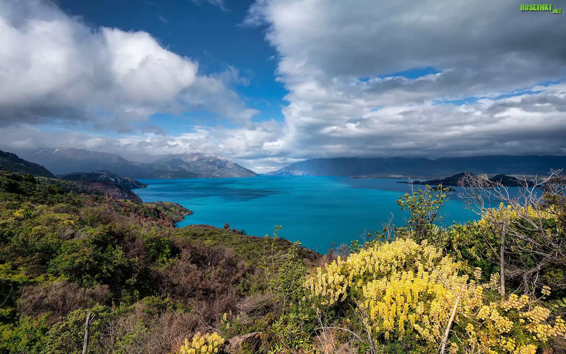 Rośliny: Góry, Jezioro, Chmury, Drzewa, Rośliny