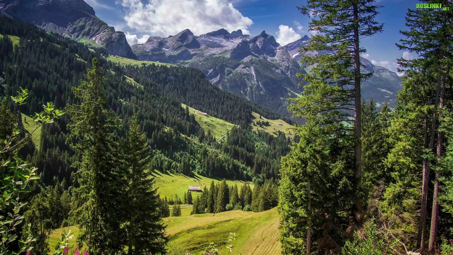 Rośliny: Góry, Dolina, Drzewa, Domy