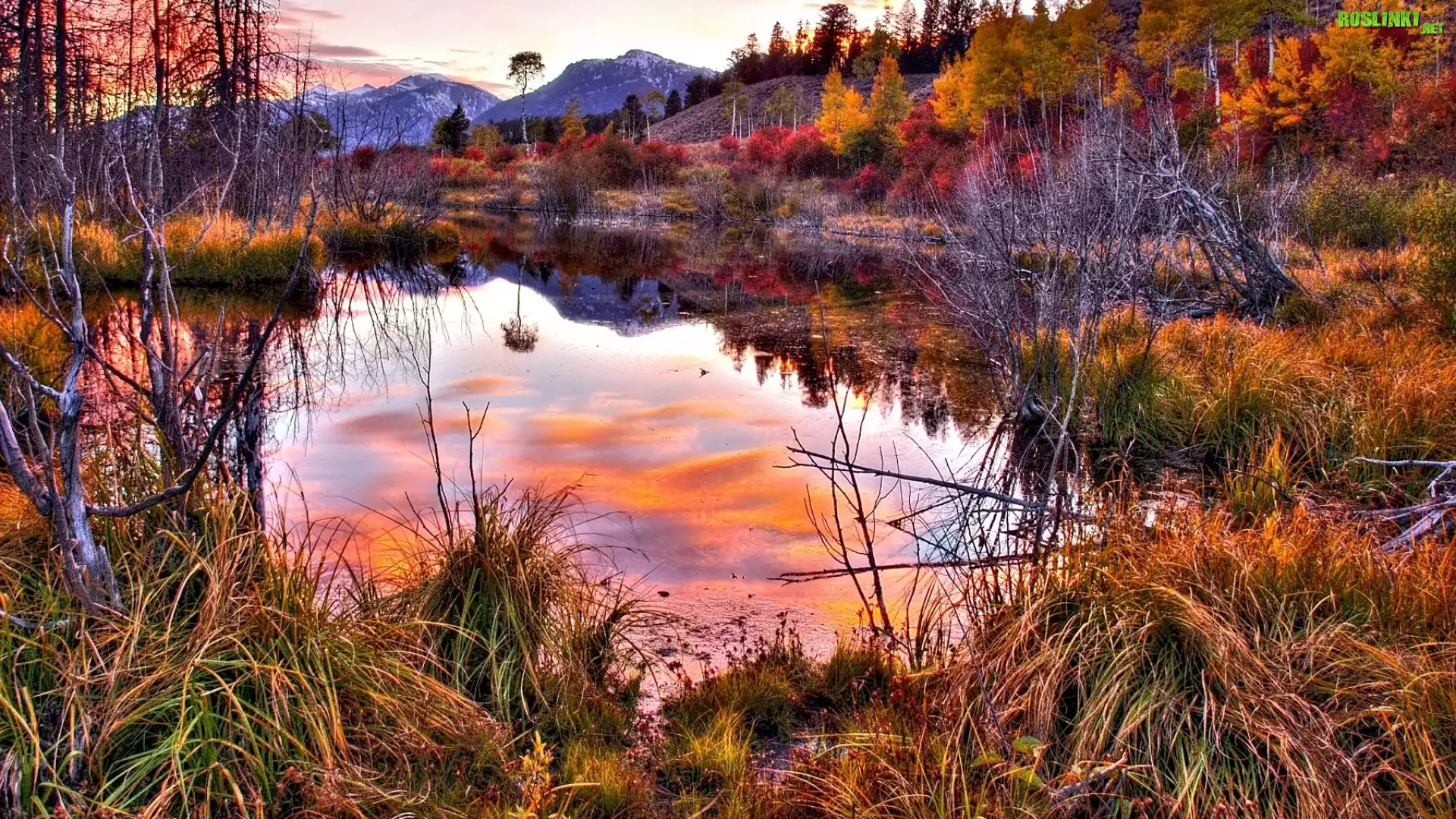 Rośliny: Góry, Jezioro, Drzewa, Trawa
