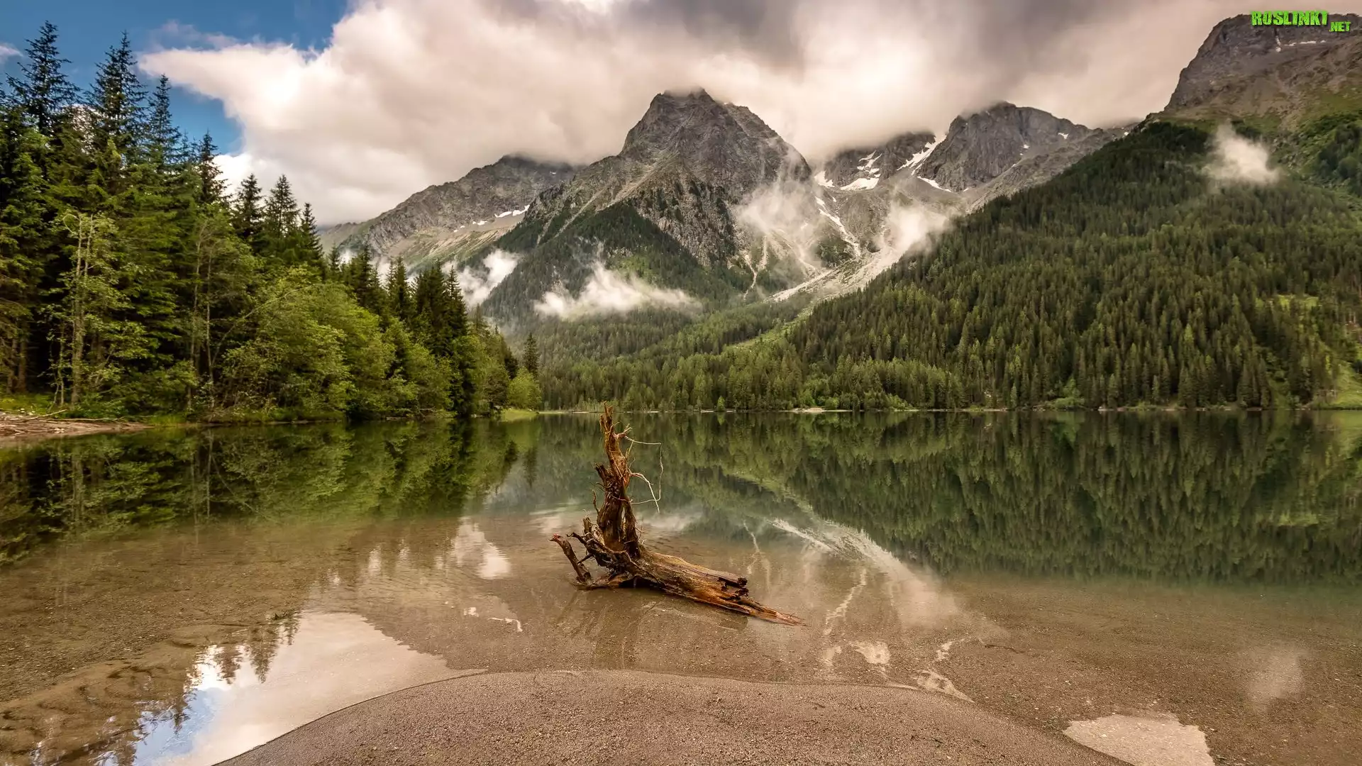 Rośliny: Góry, Jezioro, Konar, Las, Drzewa, Chmury