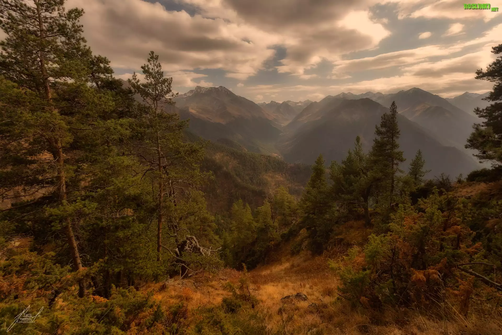 Rośliny: Góry, Dolina, Lasy, Drzewa, Chmury