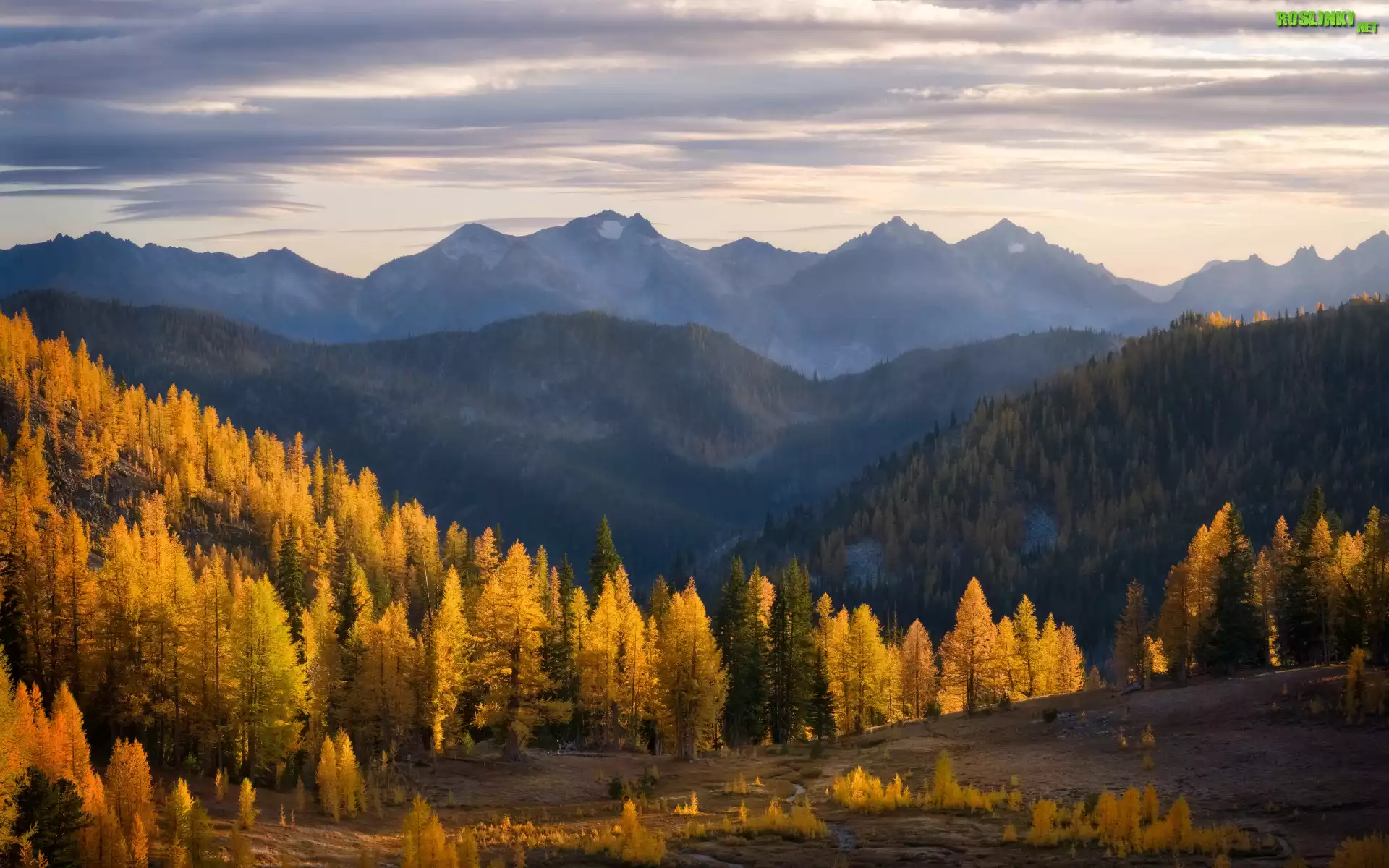 Rośliny: Jesień, Góry, Drzewa, Wzgórza, Niebo