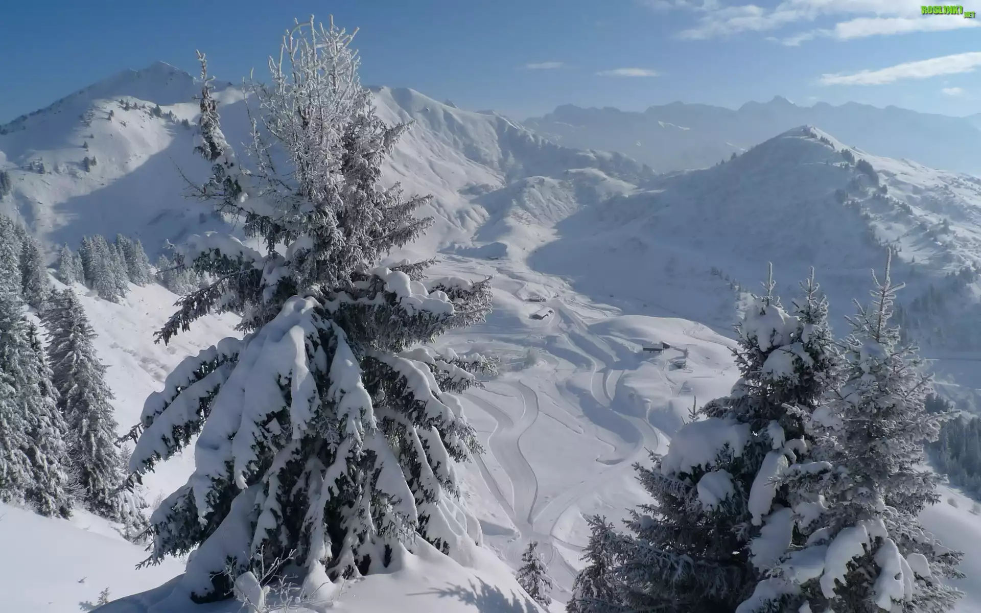 Rośliny: Góry, Szczyty, Drzewa, Zima