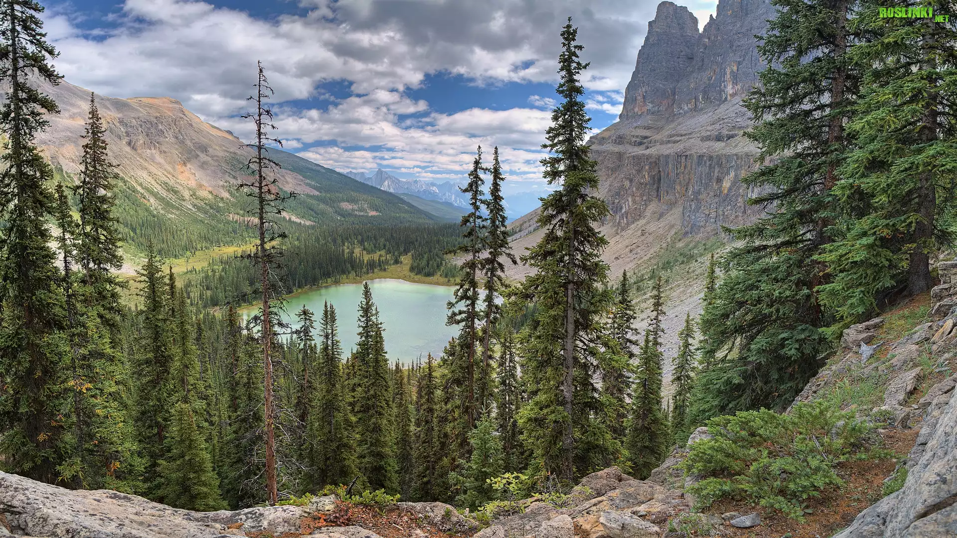 Rośliny: Góry, Jezioro, Wysokie, Iglaste, Drzewa, Chmury
