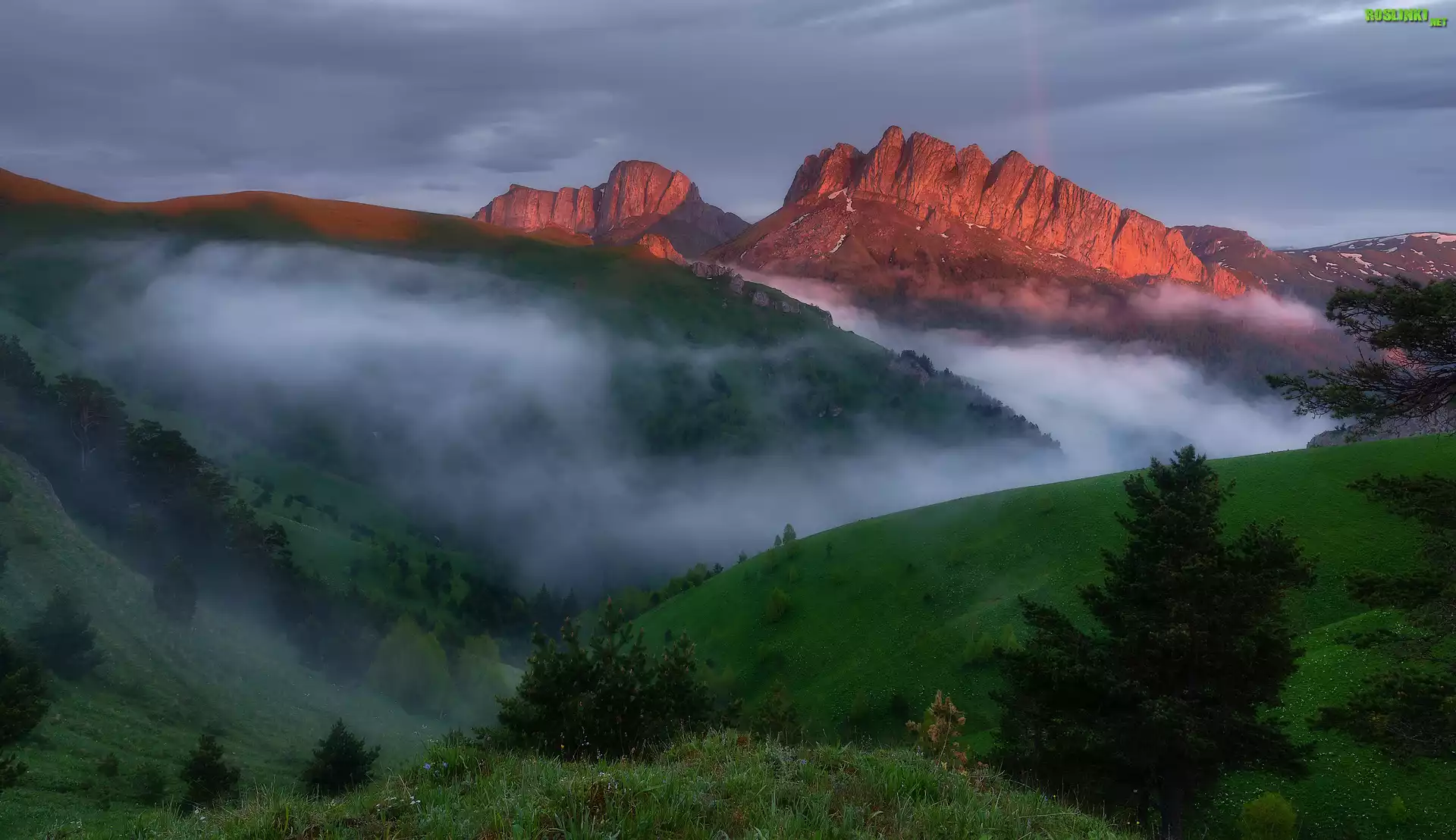 Rośliny: Góry, Wzgórza, Drzewa, Mgła