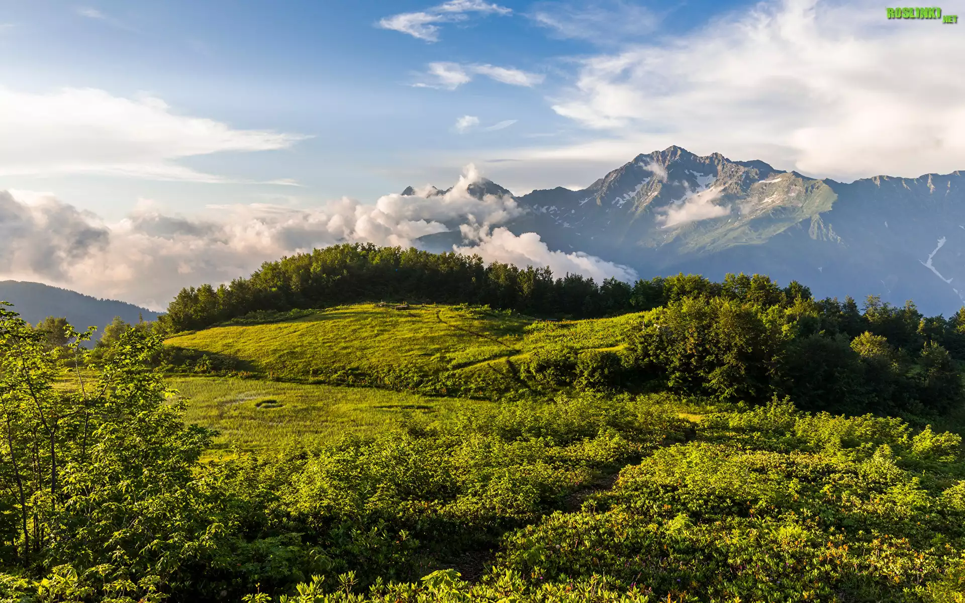 Rośliny: Góry, Chmury, Wzgórze, Drzewa, Trawa