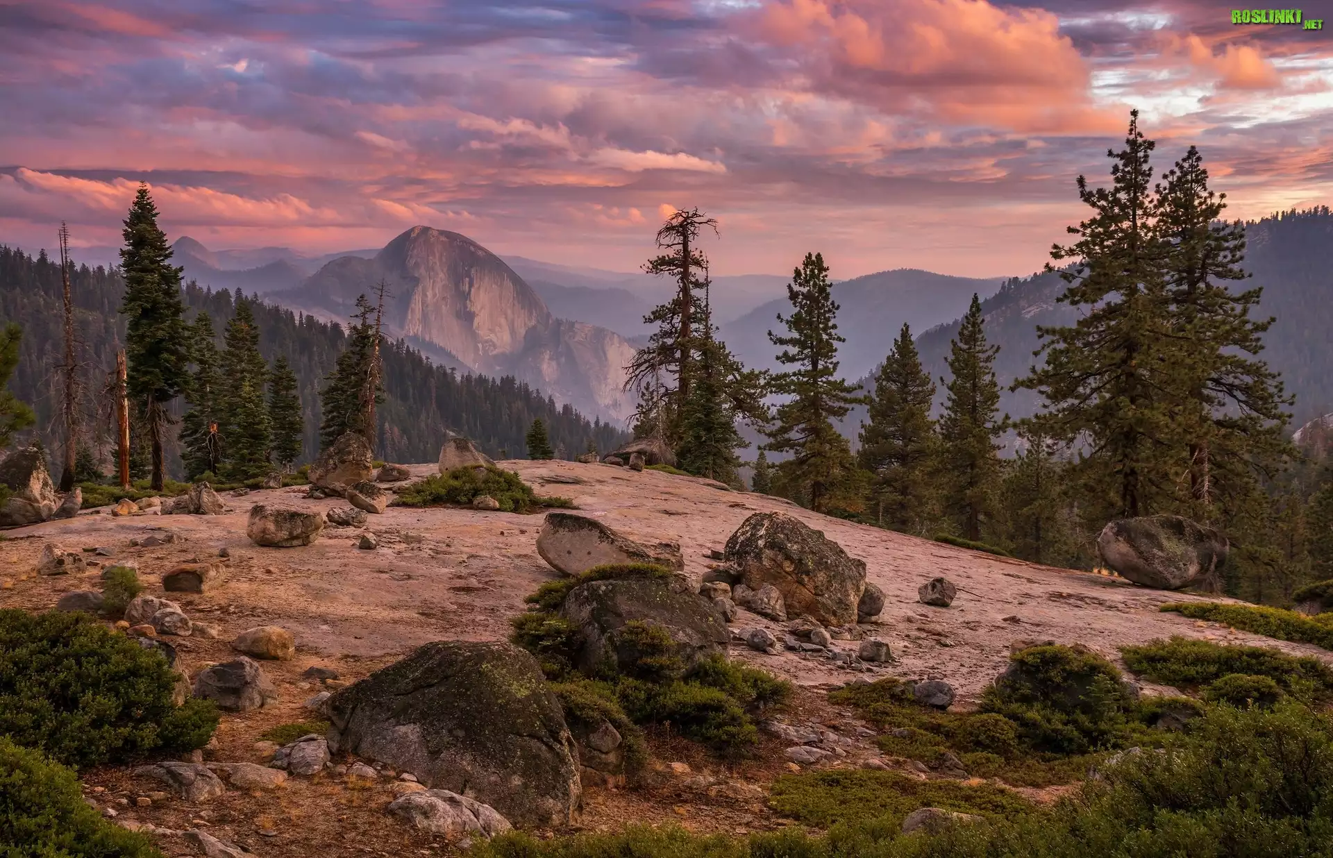 Rośliny: Góry, Wzgórze, Drzewa, Kamienie