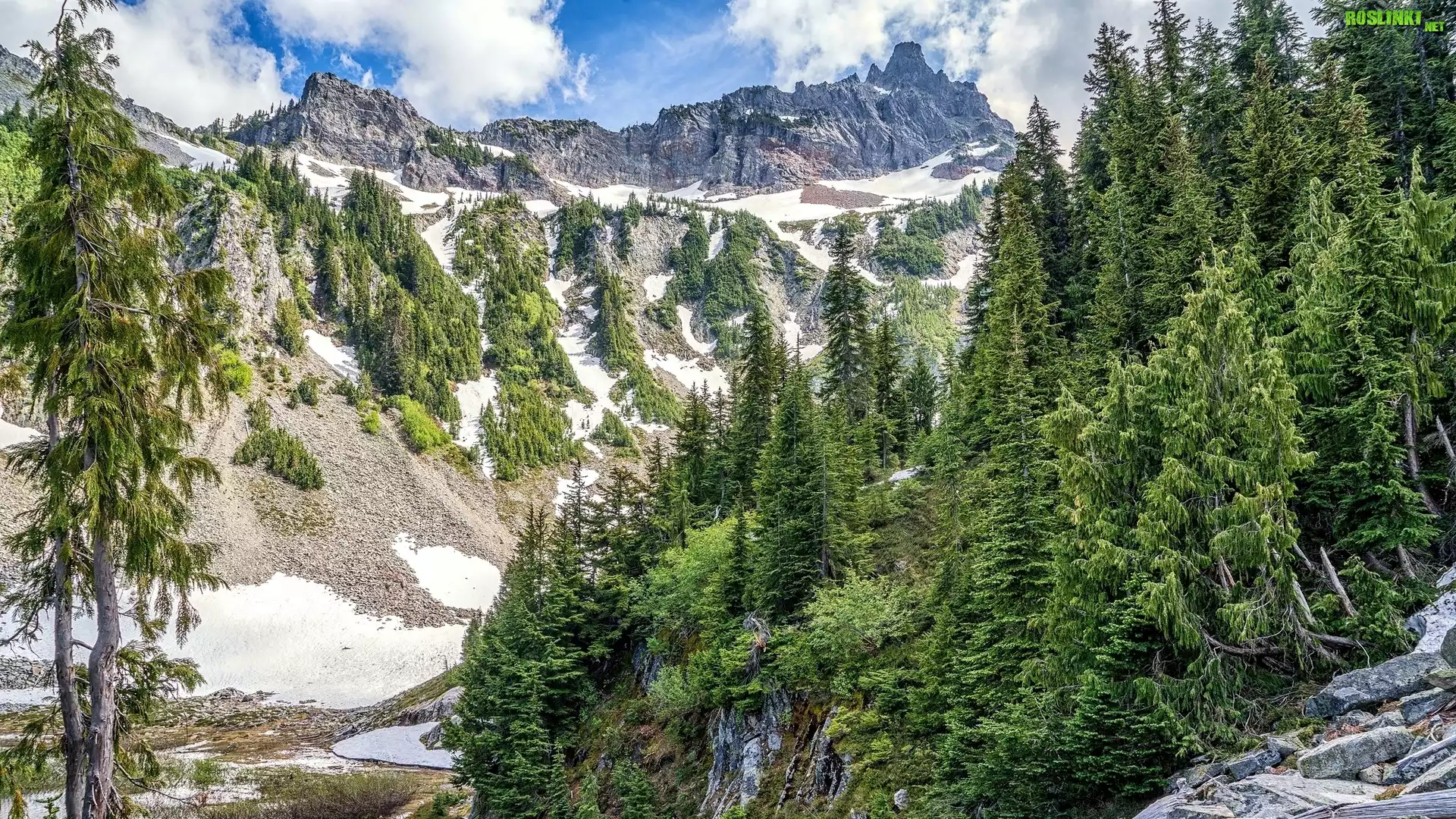 Rośliny: Góry, Śnieg, Zielone, Drzewa, Świerki