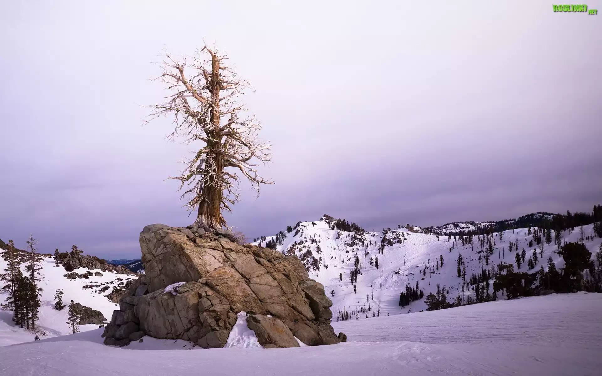 Rośliny: Góry, Skała, Drzewo, Zima