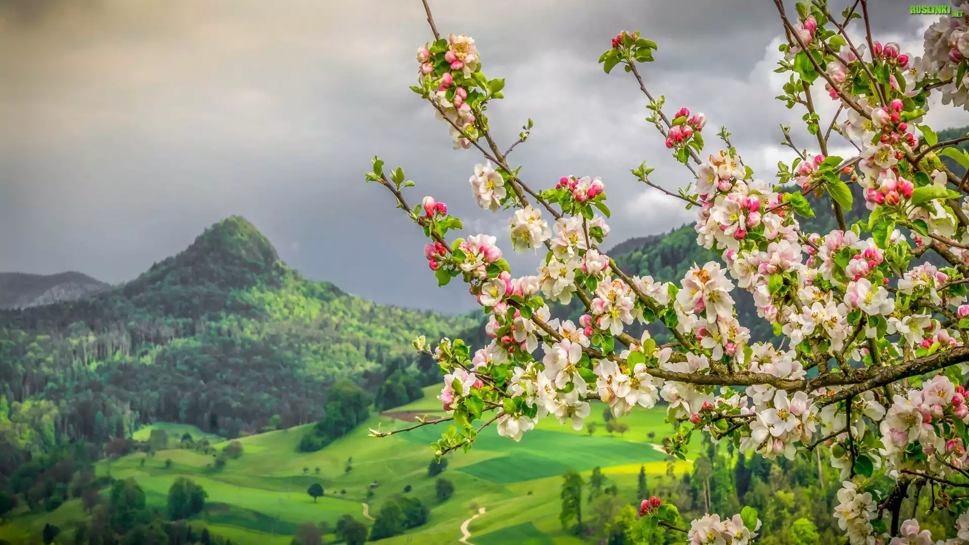 Rośliny: Góry, Drzewo owocowe, Gałązki, Kwiaty