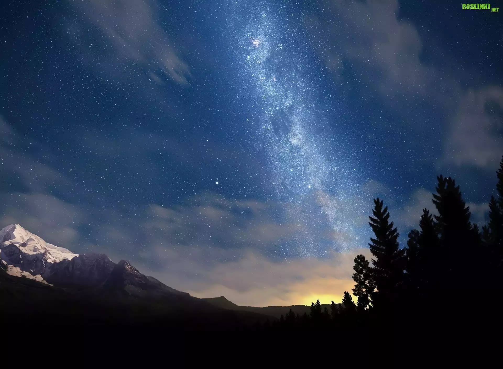 Rośliny: Góry, Drzewa, Noc, Gwiaździste, Niebo