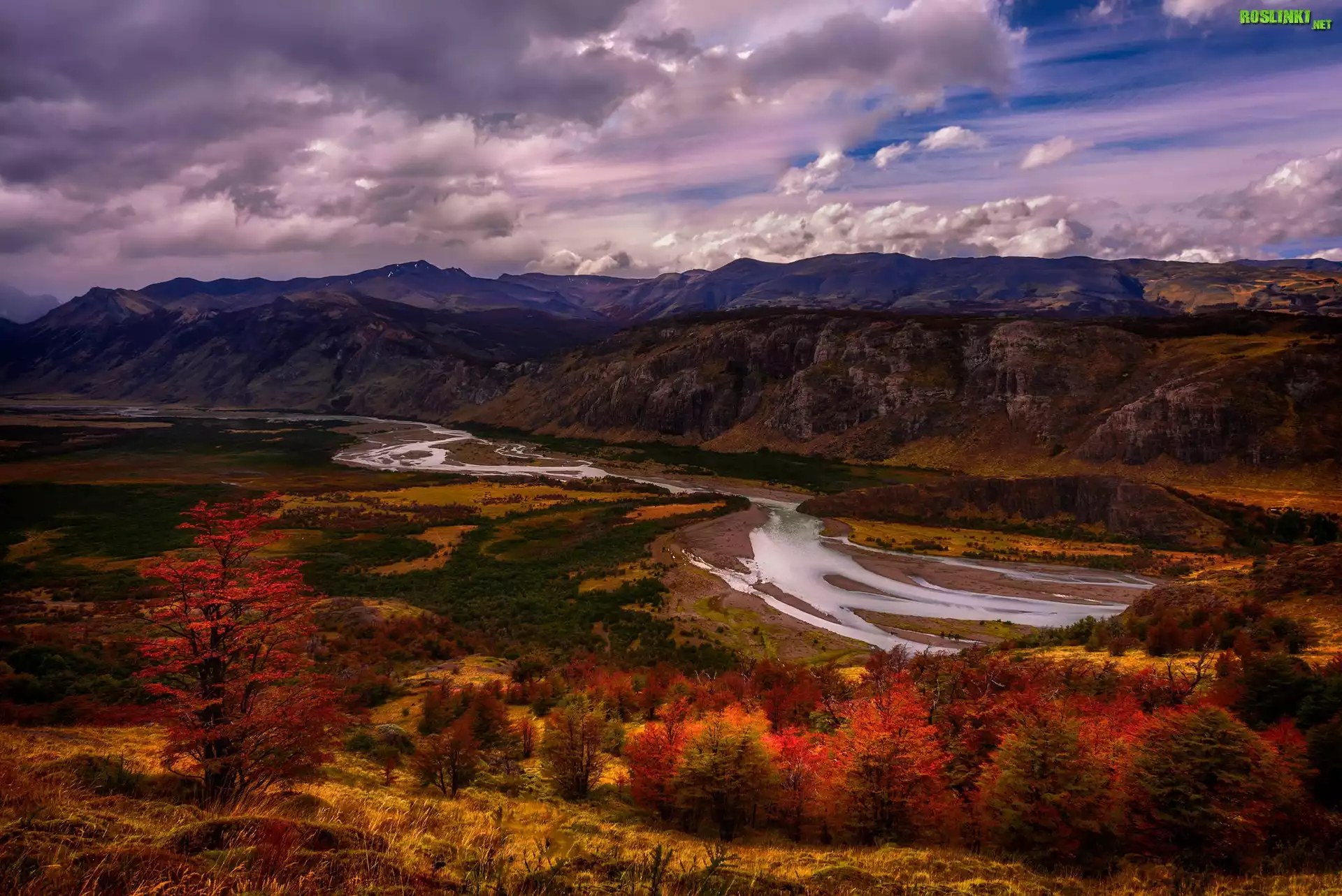 Rośliny: Góry, Rzeka, Drzewa, Jesień, Chmury
