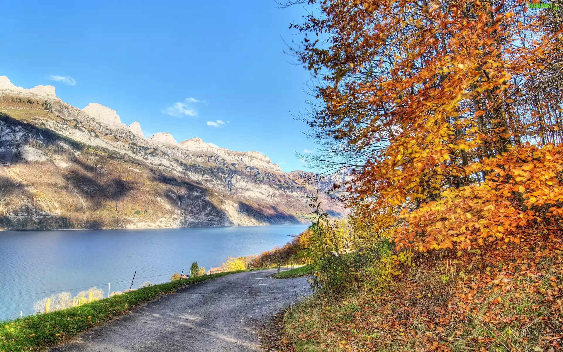 Rośliny: Góry, Rzeka, Droga, Jesienne, Liście